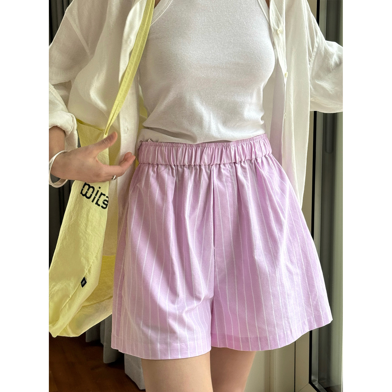 Lvu 여름 새로운 한국식 간단한 실루엣 사슴 허리 줄무늬 캐주얼 바지 멋진 통기성 반바지