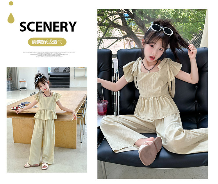 여자 여름 세트 2024 새로운 어린이 서양식 소녀 여름 원피스 한국 스타일 플라잉 슬리브 탑 와이드 다리 바지 투피스 세트스토어 가기