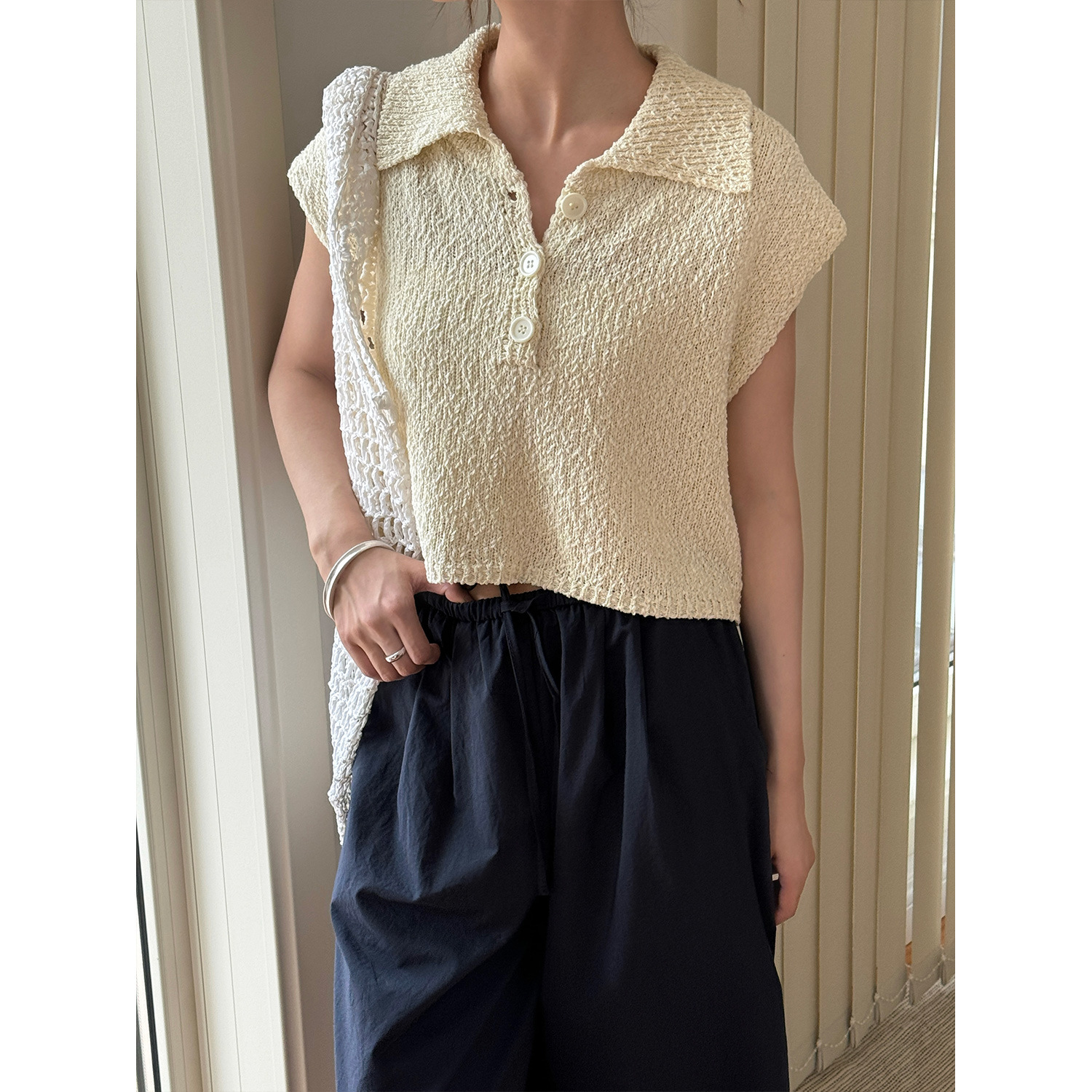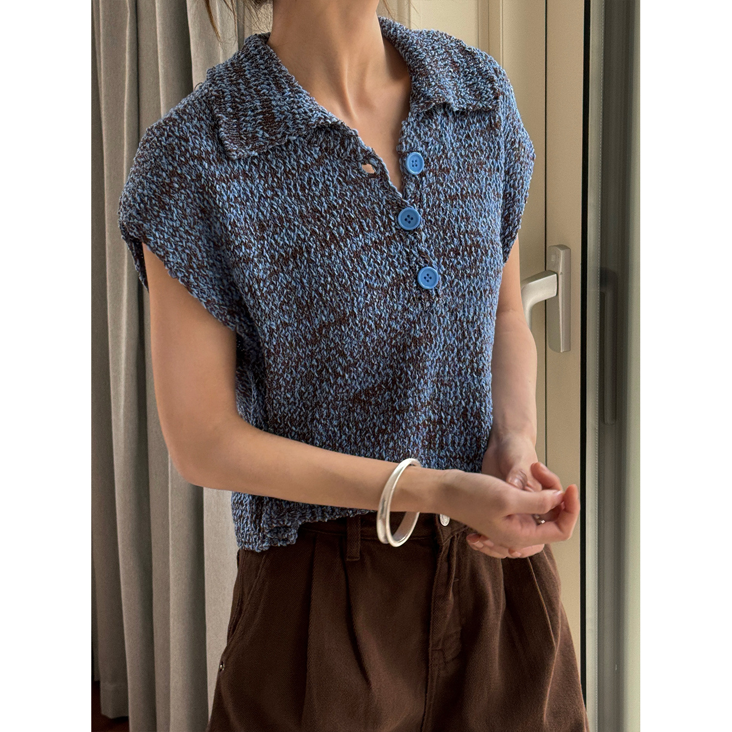 Lvu 여름 새로운 한국 스타일 유행 연령 감소 폴로 칼라 니트 조끼 부드러운 왁스 피부 친화적 인 캐주얼 탑