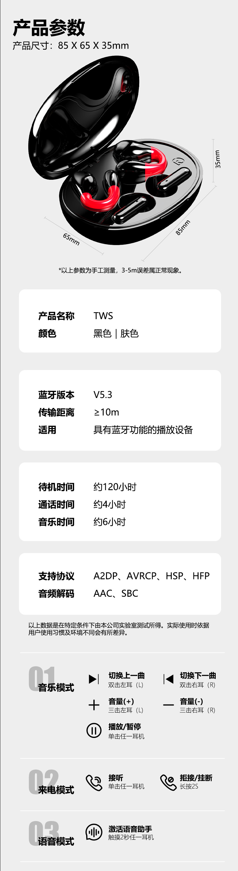 TWS 커플 헤드폰 두 개의 헤드폰 상자 5.3 진정한 블루투스 헤드폰 무선 지능형 소음 감소 높은 충실도 원래 사운드