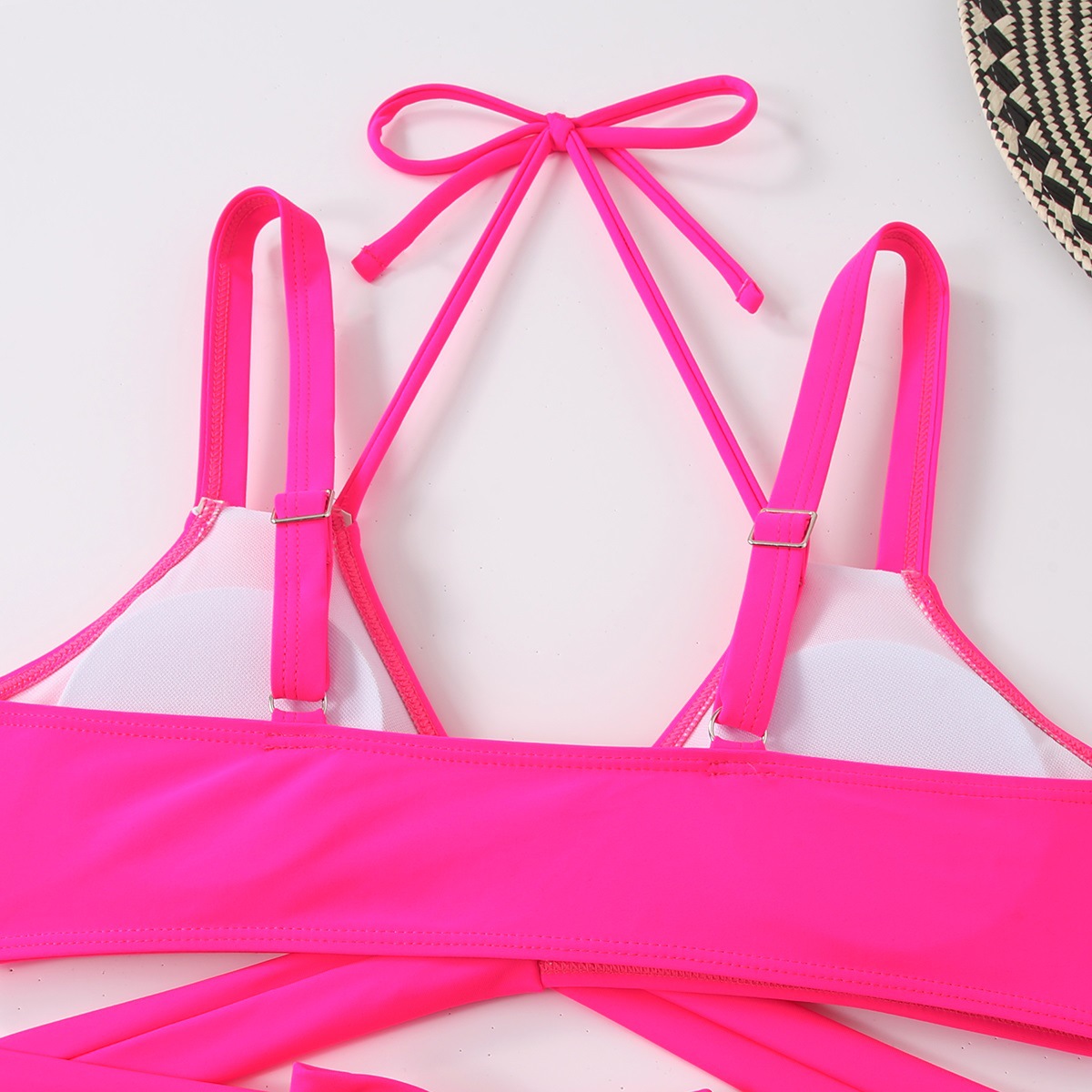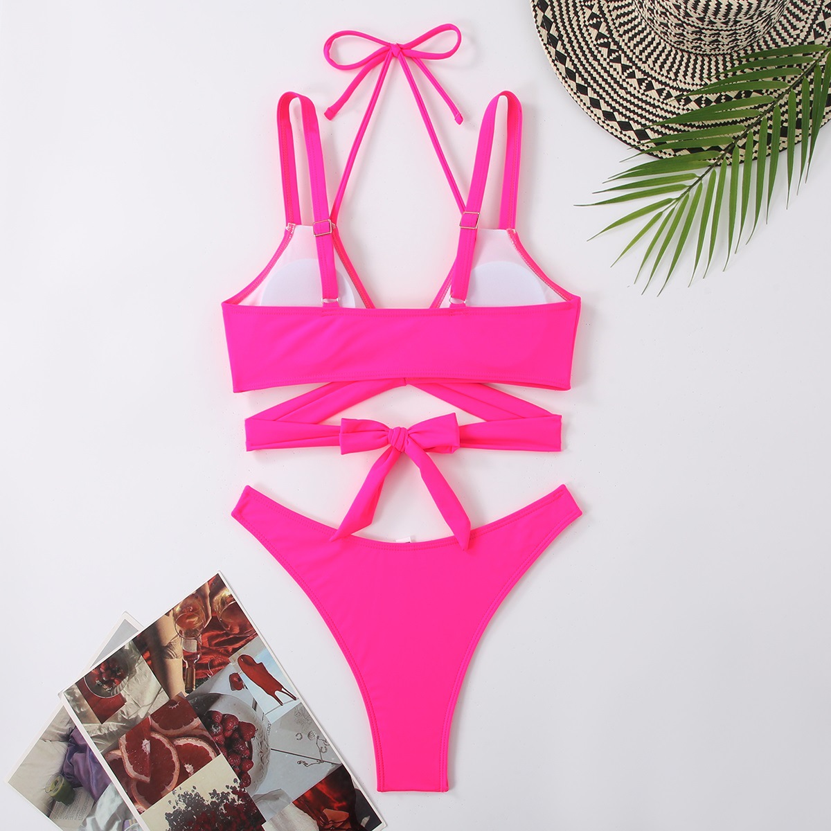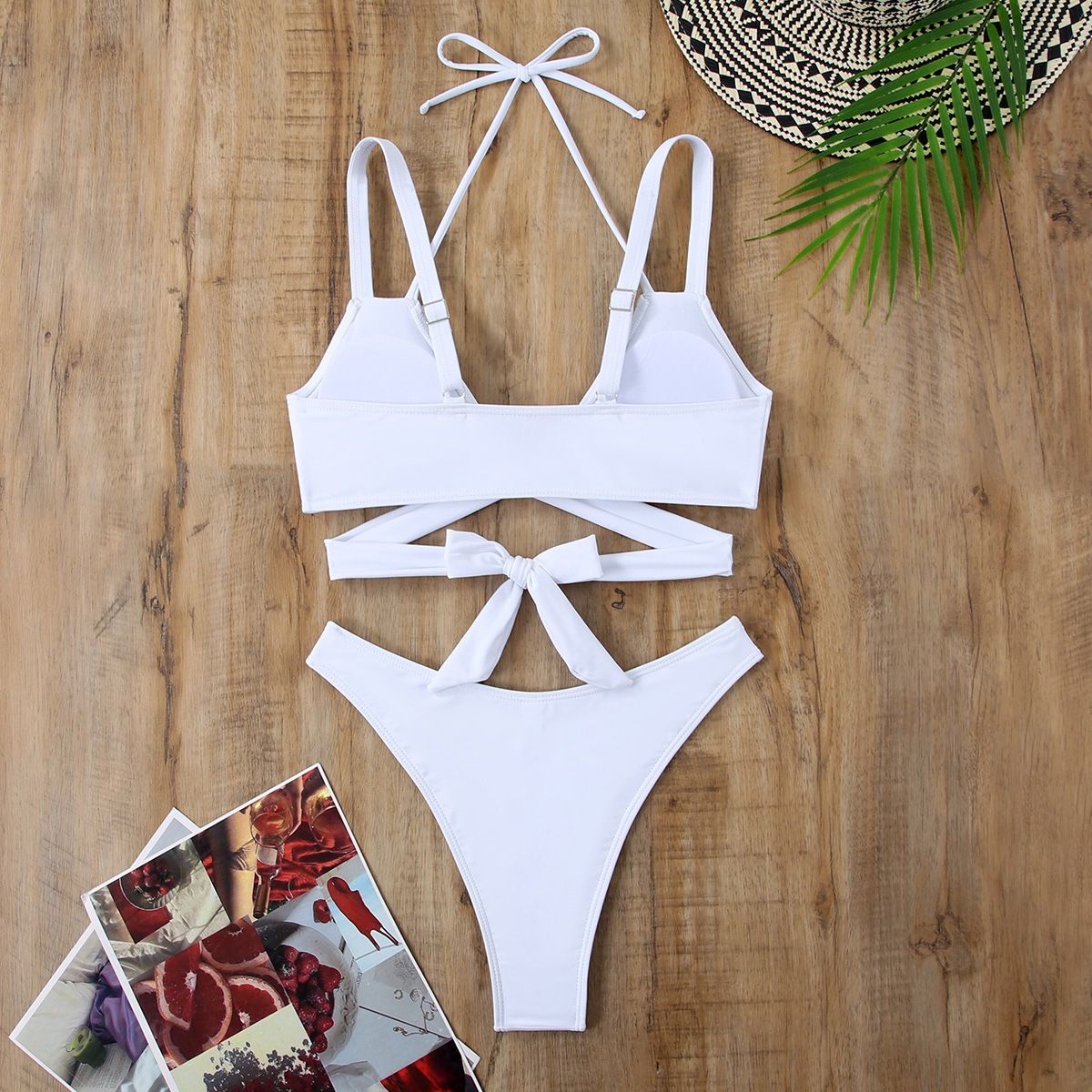 2025 새로운 유럽과 미국의 비키니 섹시한 홀터넥 스트랩 스플릿 수영복 Amazon AliExpress 백리스 비키니