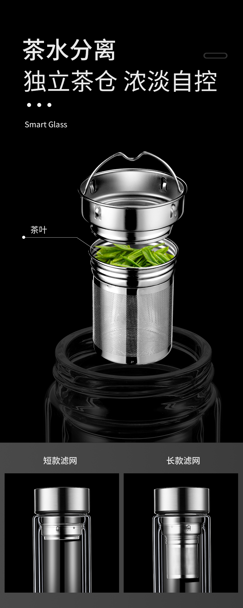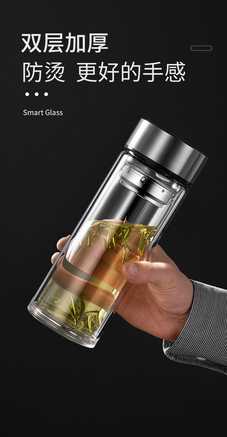 双层玻璃杯家用水杯男茶杯茶水分离耐高温泡茶杯隔热车载满和