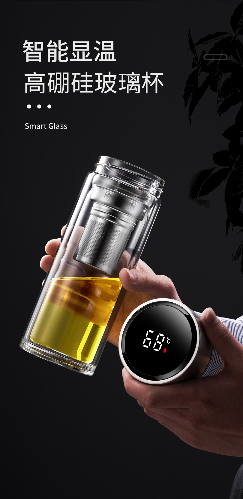 • 【杯盖显温】350ml黑色(茶水分离器)