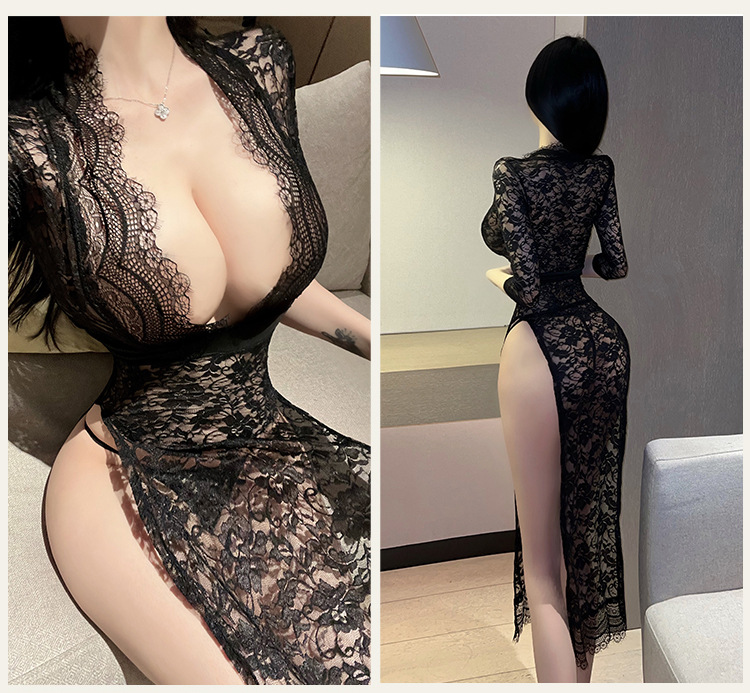플러스 사이즈 100kg 에로틱 란제리 섹시한 여성 레이스 잠옷 열정적인 시스루 의상 뜨거운 슬릿 유니폼 유혹 스타일스토어 가기