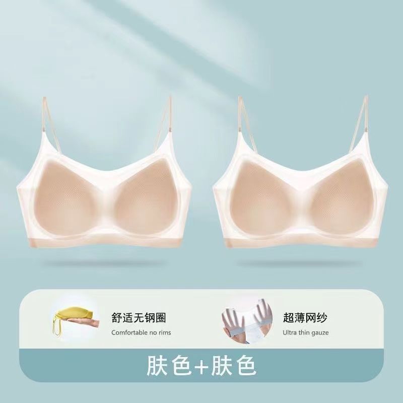 초박형 나일론 여름 tracless 나일론 속옷 여성용 경량 통기성 푸시 업 파라미리스 고정 가슴 패드 원피스 텍스트