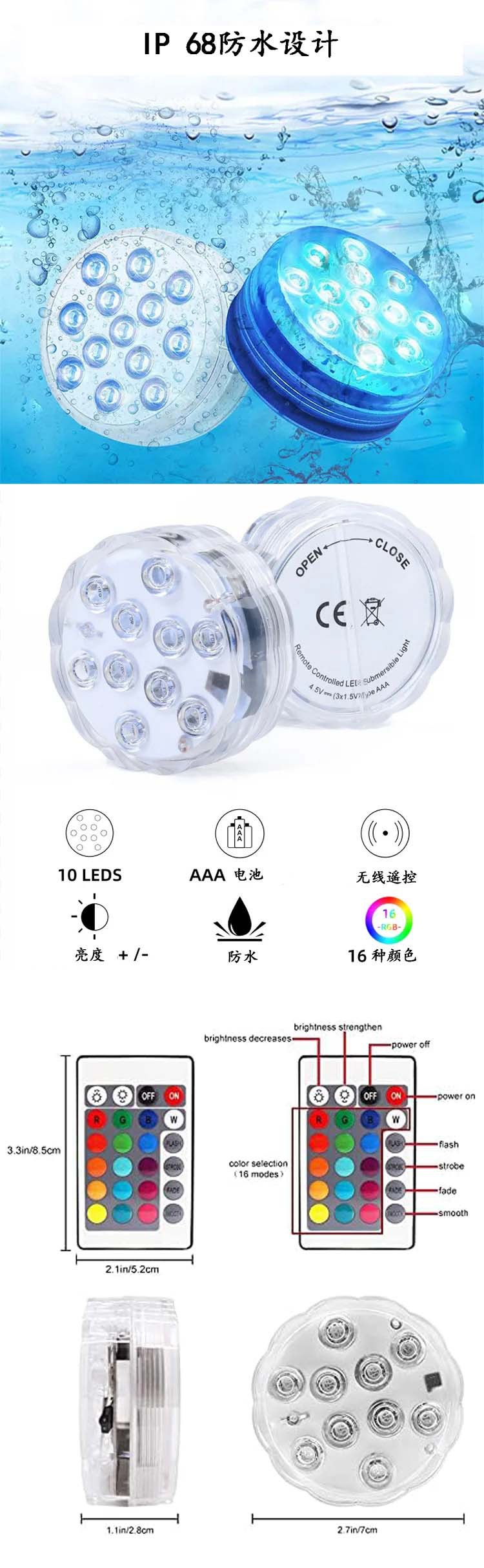 수중 조명 2024 원격 제어 변환 다채로운 LED 10 램프 수영장 조명 물고기 탱크 조명 분수 조명 다이빙 조명