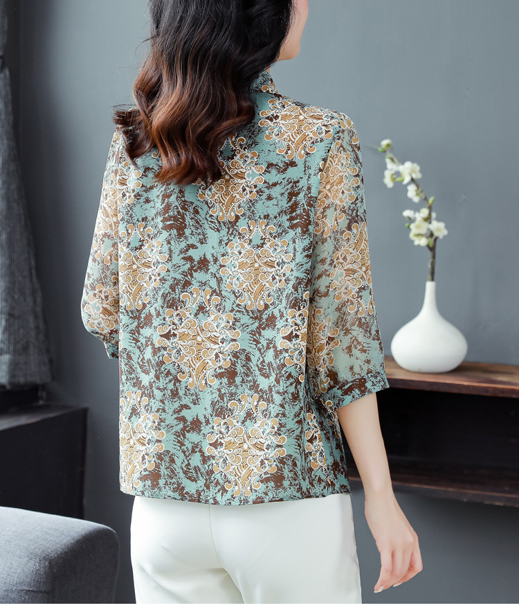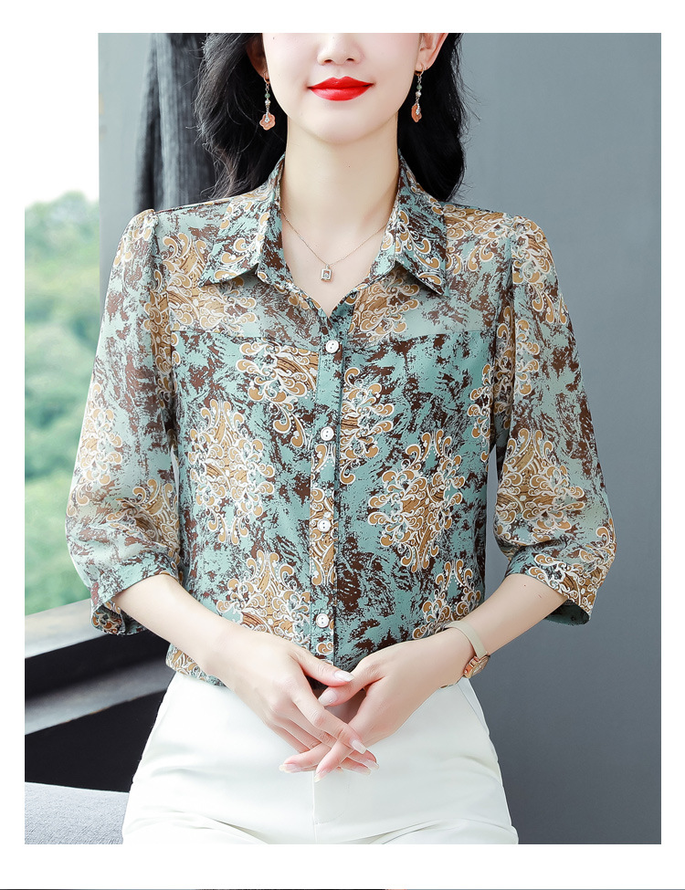 프린트 쉬폰 셔츠 여성 상의 2024 여름 신작 여성용 프린트 슬리밍 셔츠