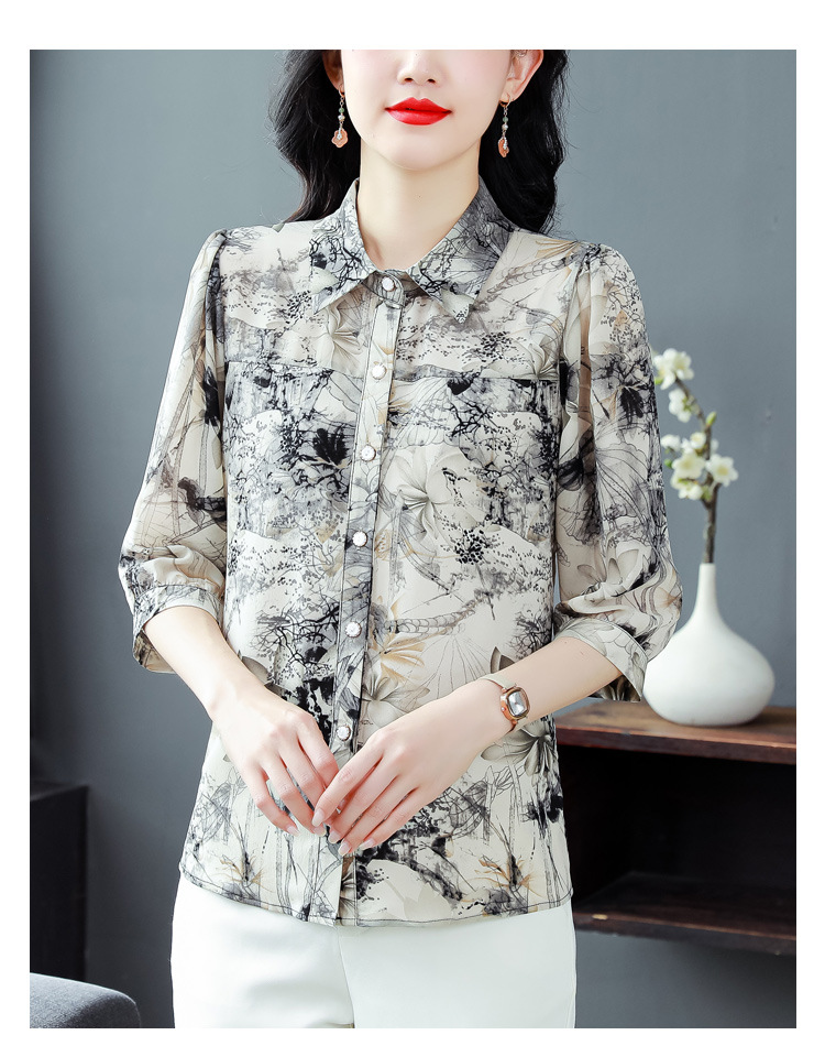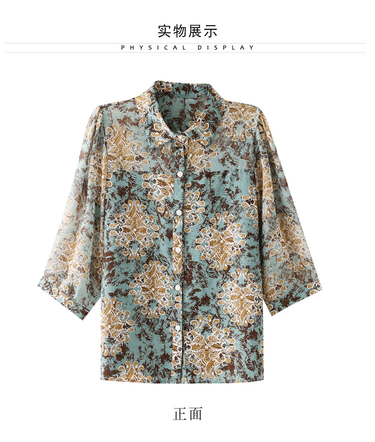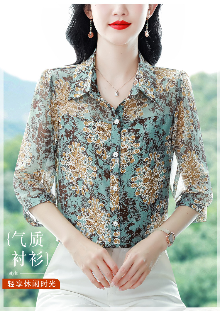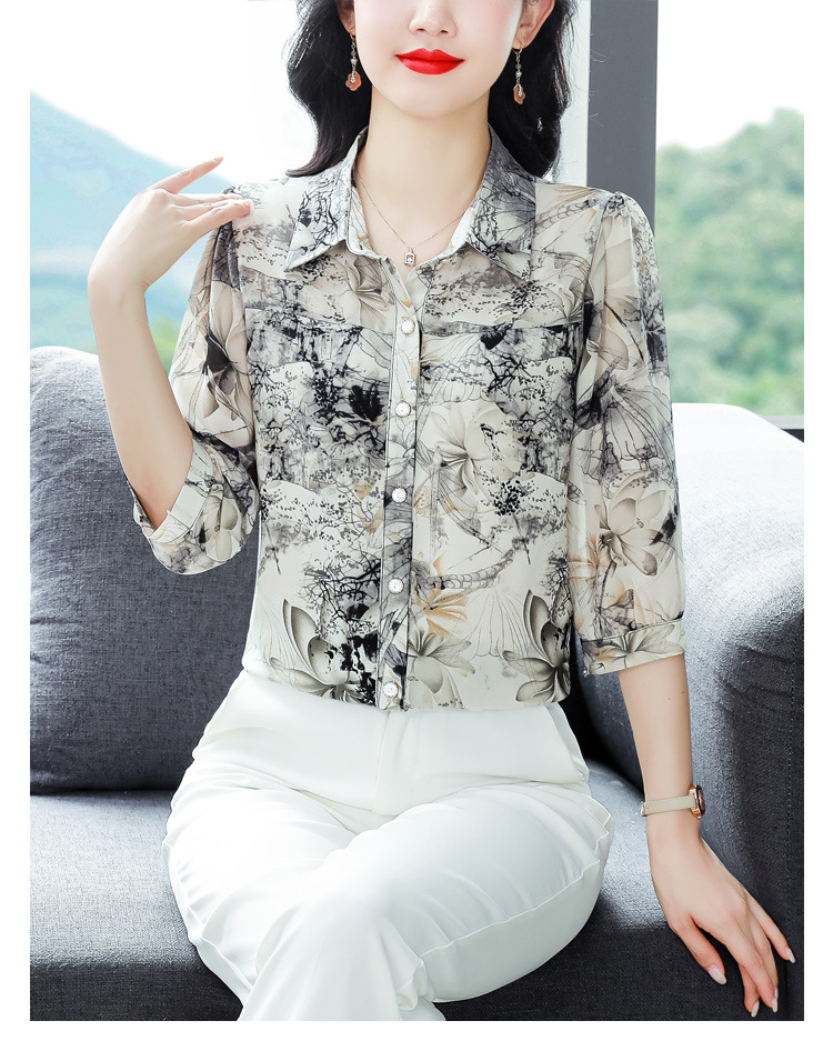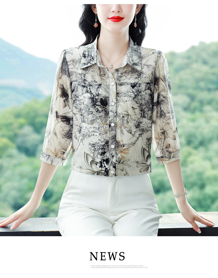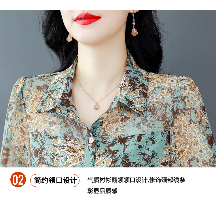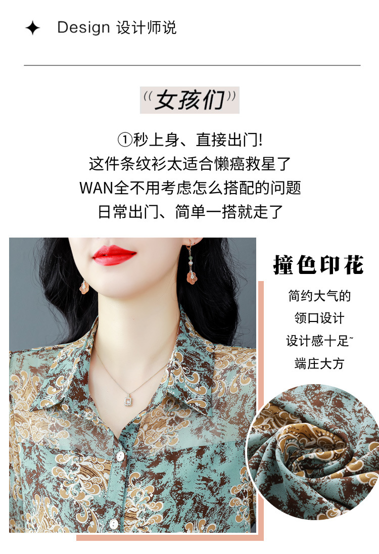 프린트 쉬폰 셔츠 여성 상의 2024 여름 신작 여성용 프린트 슬리밍 셔츠스토어 가기
