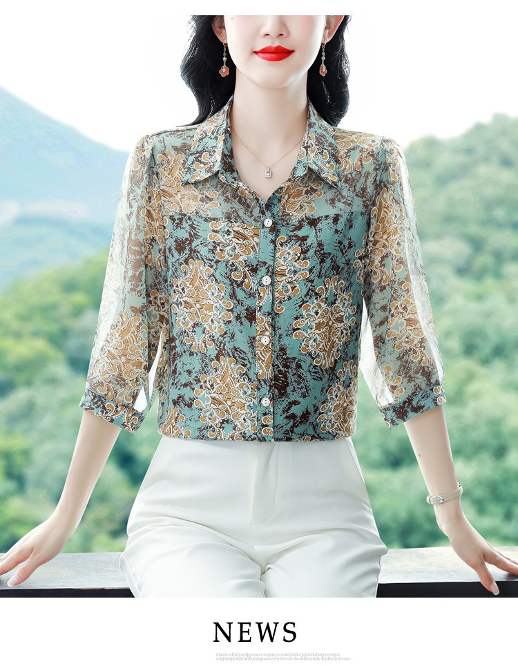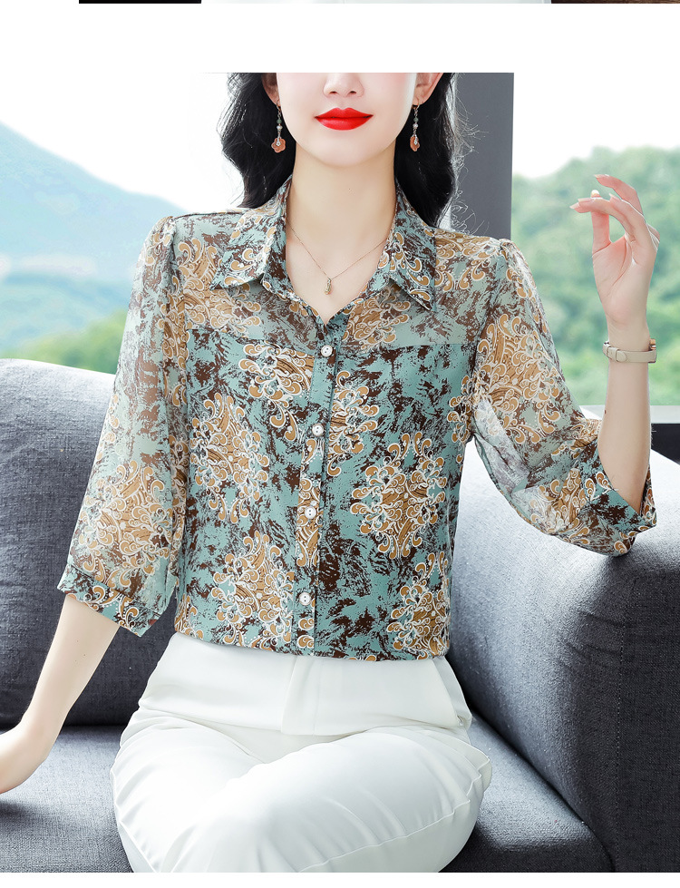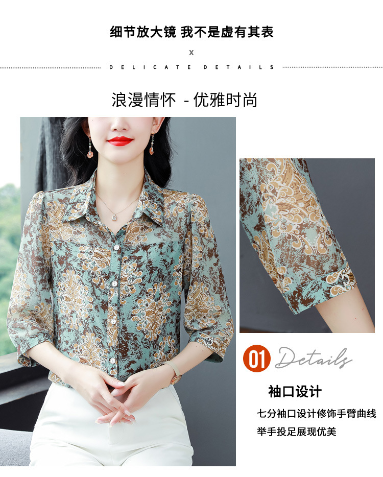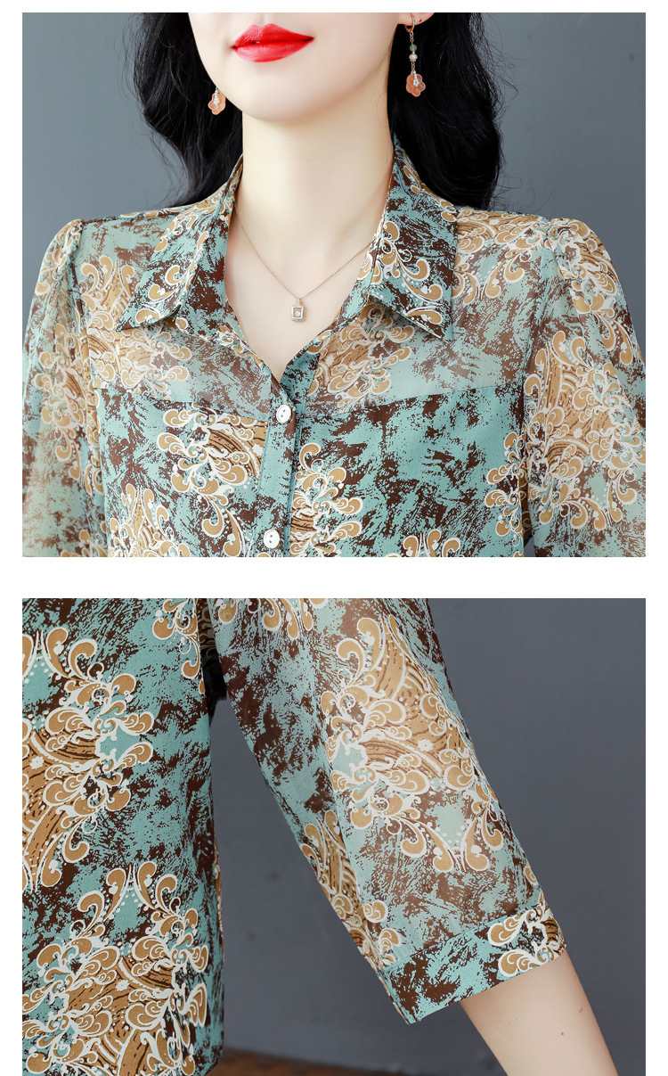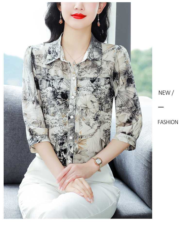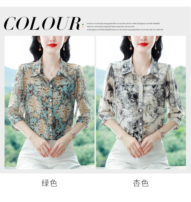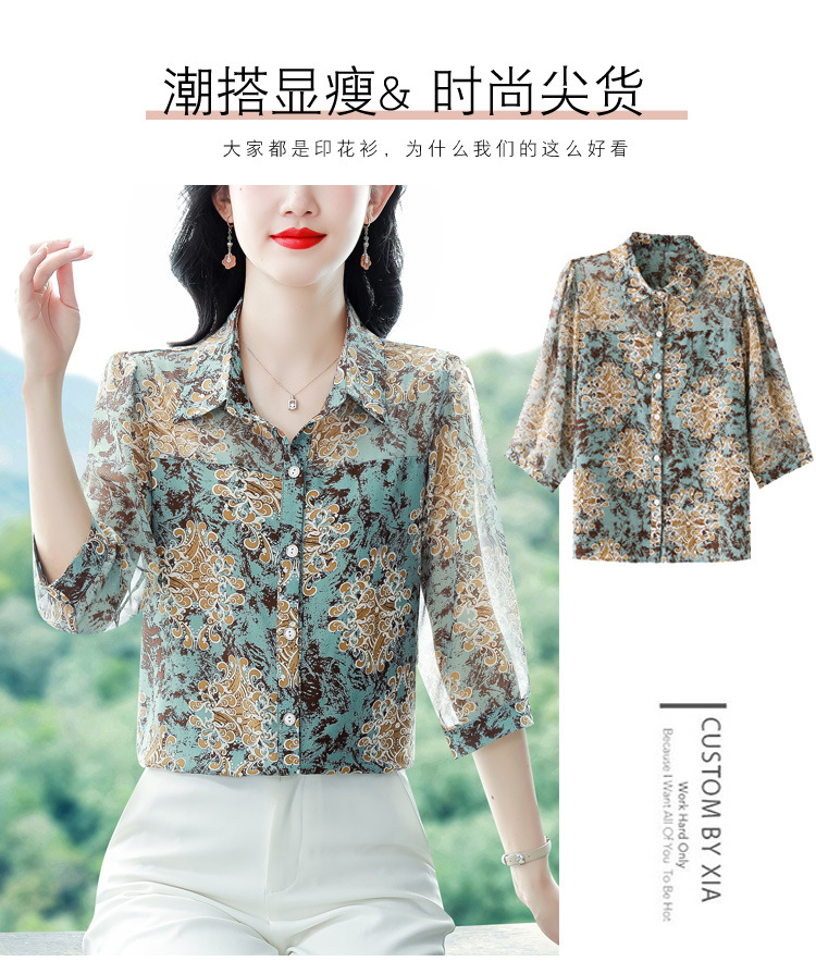 프린트 쉬폰 셔츠 여성 상의 2024 여름 신작 여성용 프린트 슬리밍 셔츠스토어 가기