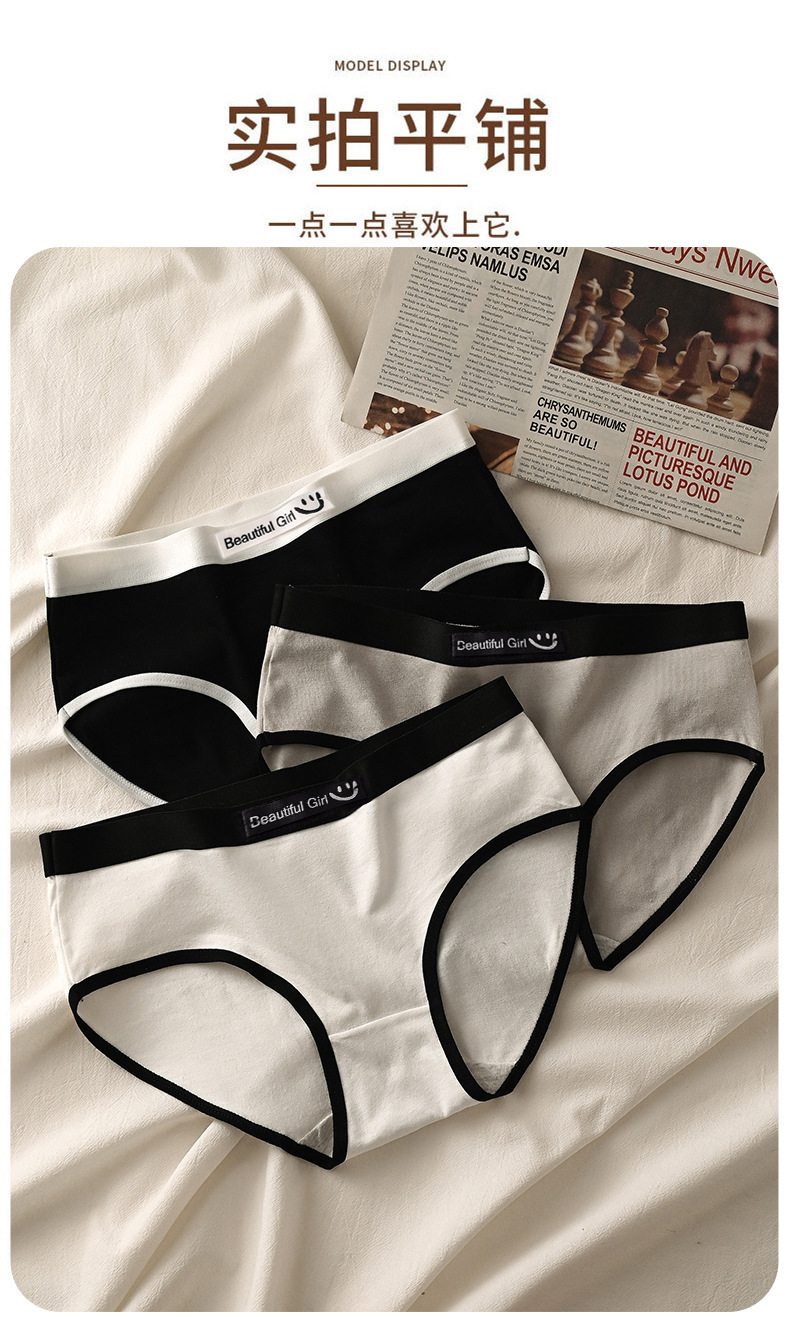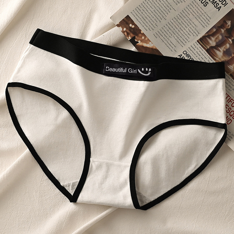 속옷 여성의 통기성 더블 가랑이 소녀 대비 컬러 스티칭 글자 웃는 얼굴 허리 브리프는 대외 무역 도매 지원