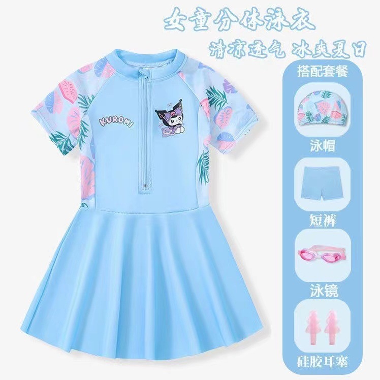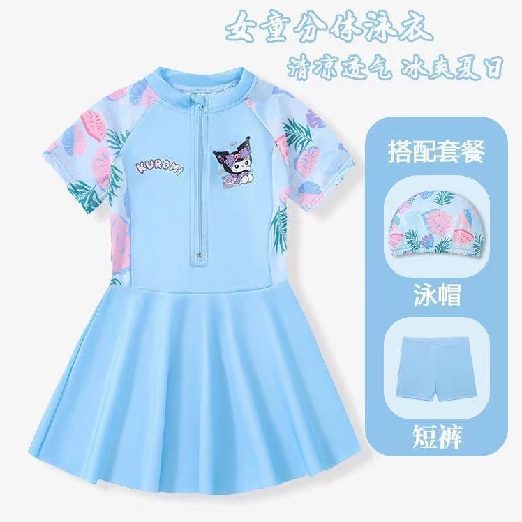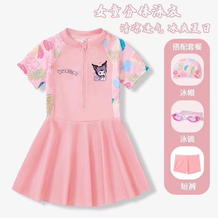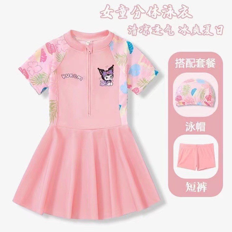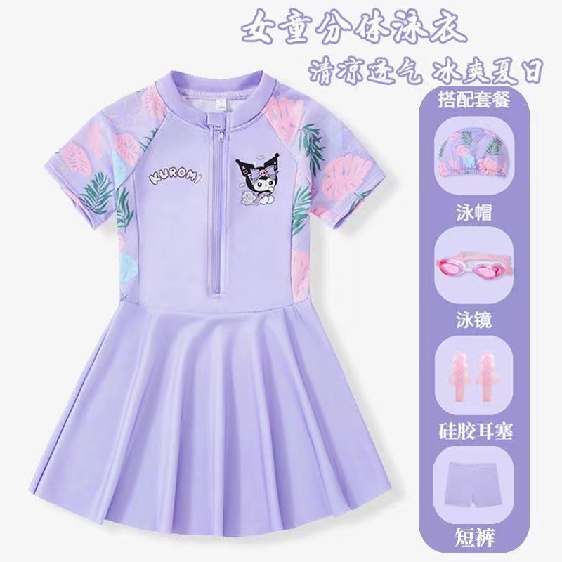 Kulomi Girls 수영복 여름 2024 새로운 소녀 원피스 수영복 선 스크린 온천 스커트 수영복