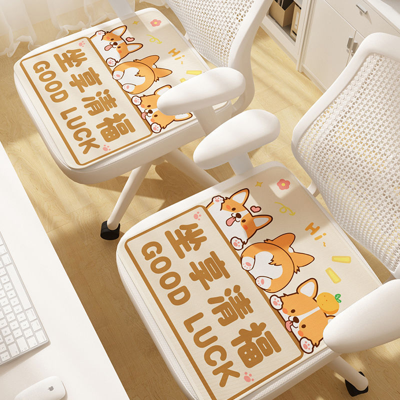 만화 라인 강아지 아이스 실크 쿠션 여름 좌식 사무실 방귀 패드 먼지 방지 좋은 관리 미끄럼 방지 의자 쿠션