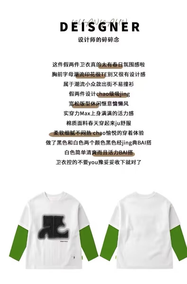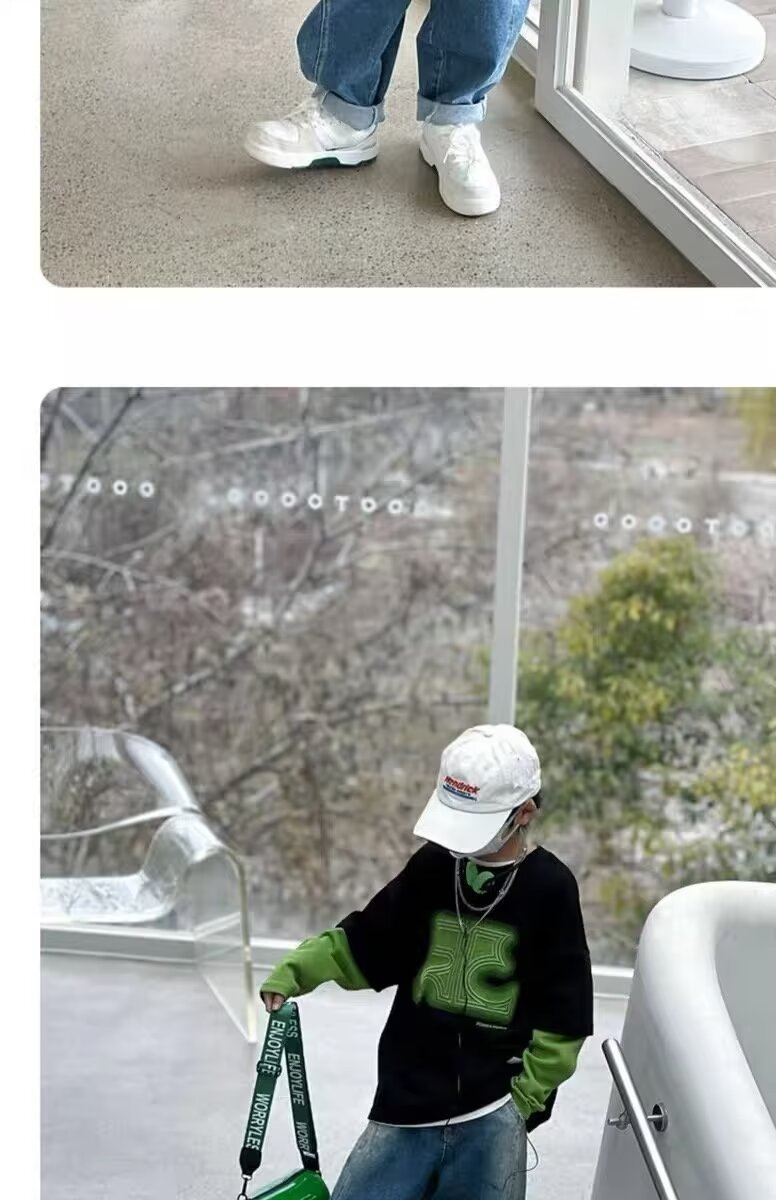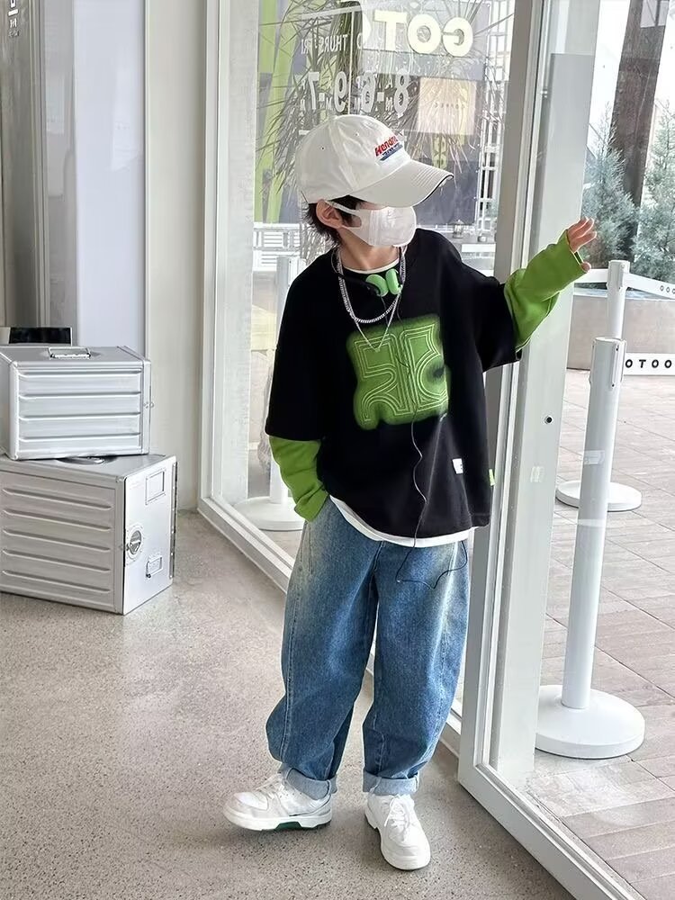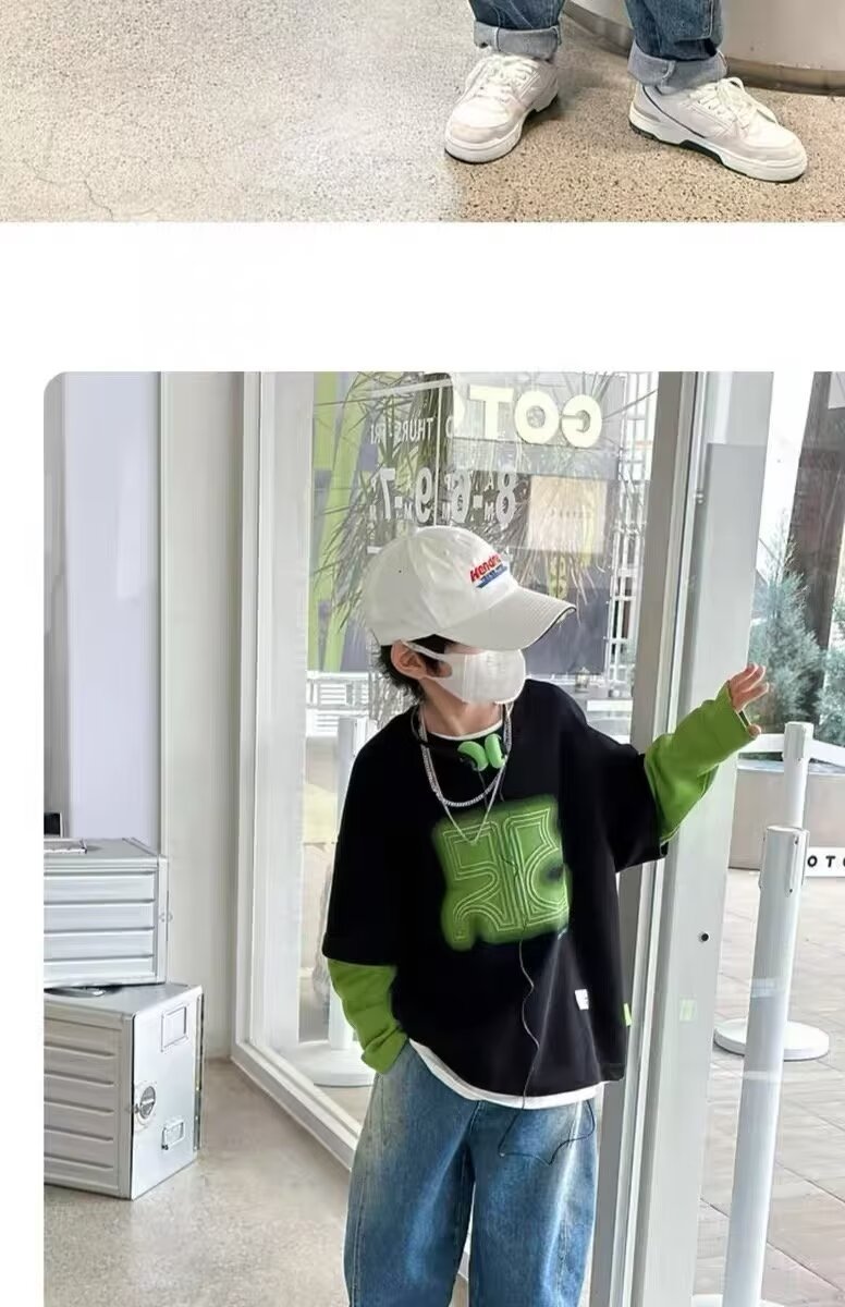아동복 남아 스웨트셔츠 봄 가을 2024 신상 스타일리쉬 남자아이 옷 아동 투피스 스타일 긴팔 티셔츠 상의