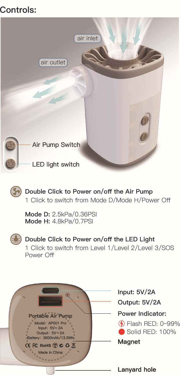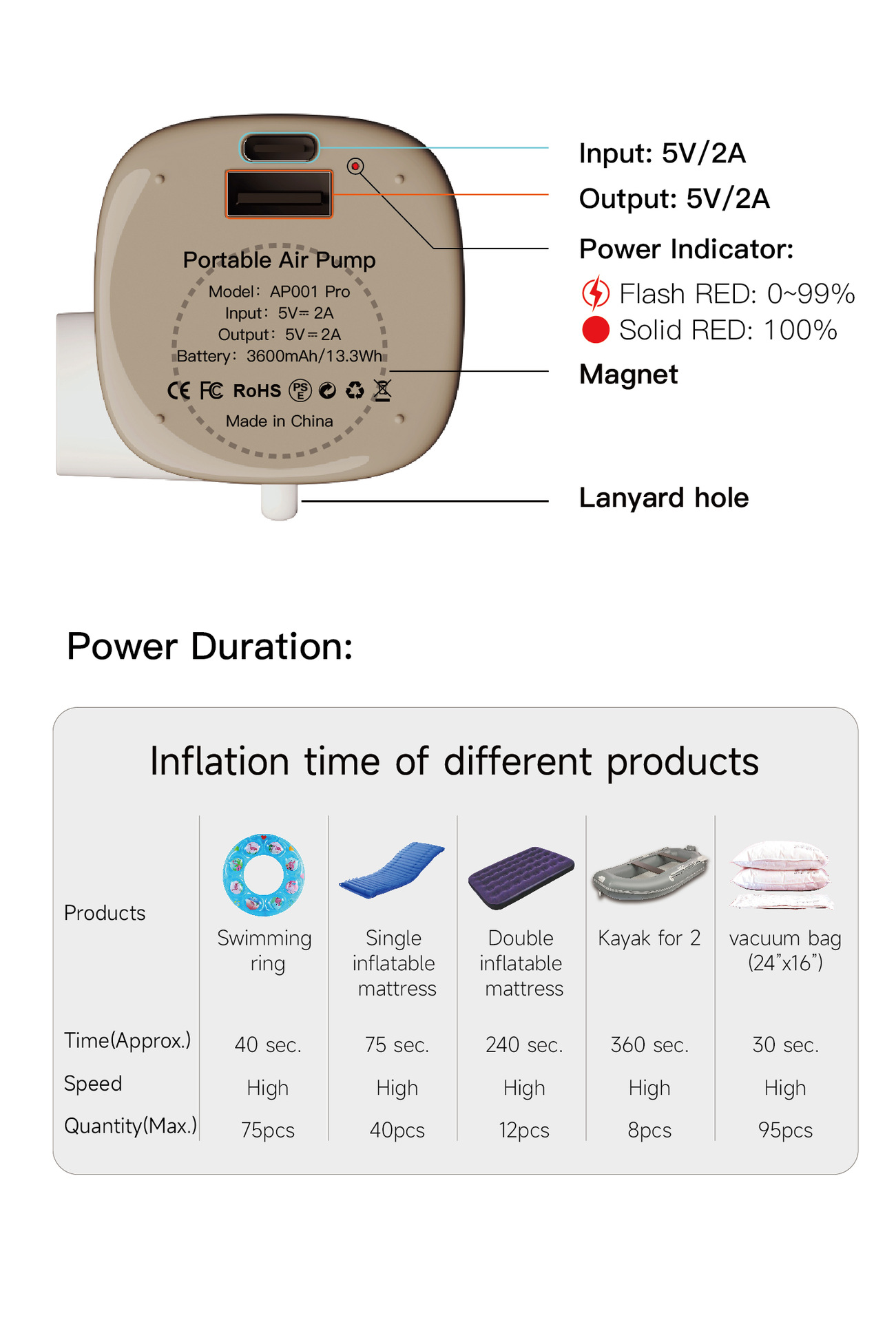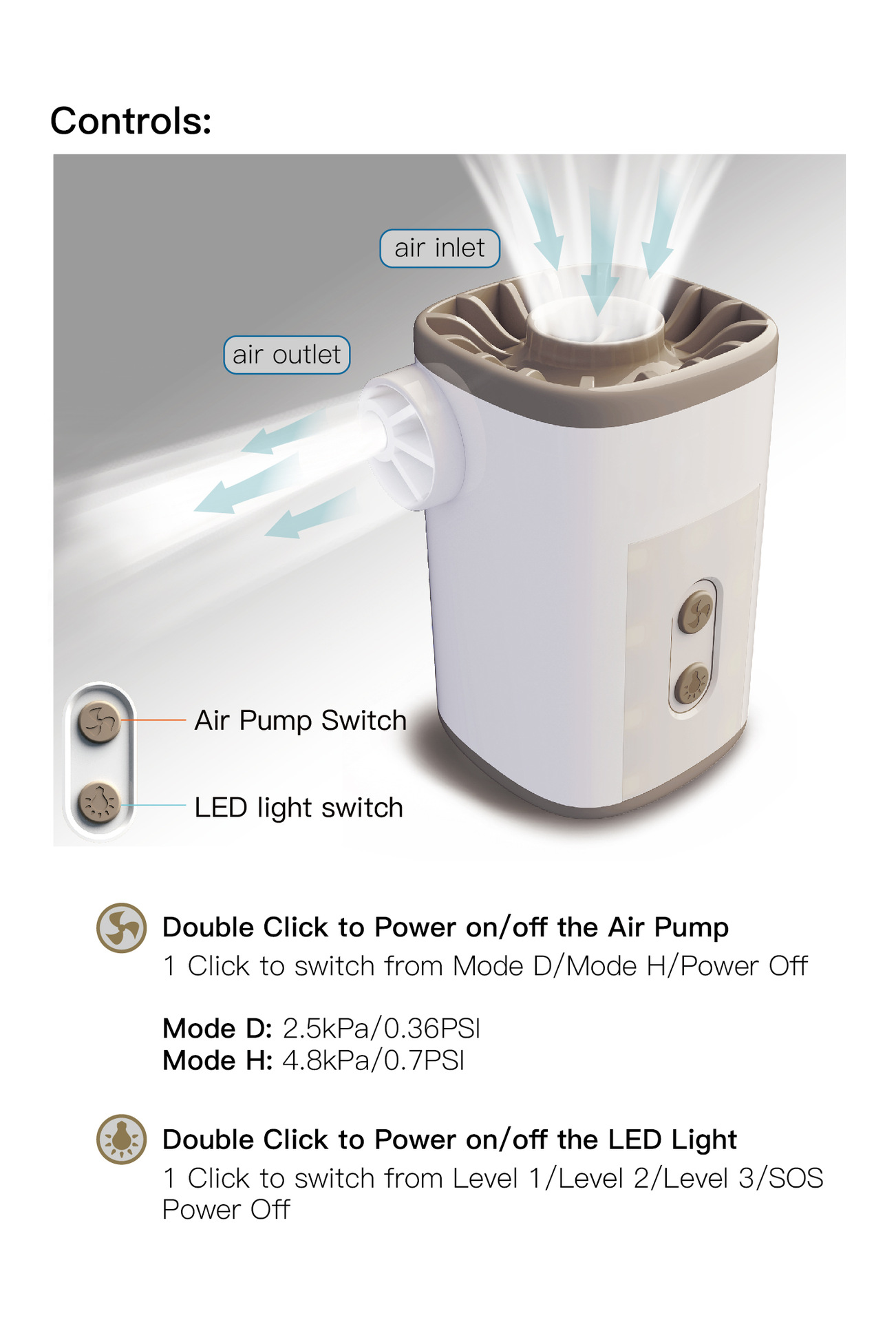 국경 간 캠핑 무선 야외 에어 펌프 에어 쿠션 침대 수영 링 슬리핑 쿠션 에어 펌프 에어 펌프 캠핑 조명 에어 펌프
