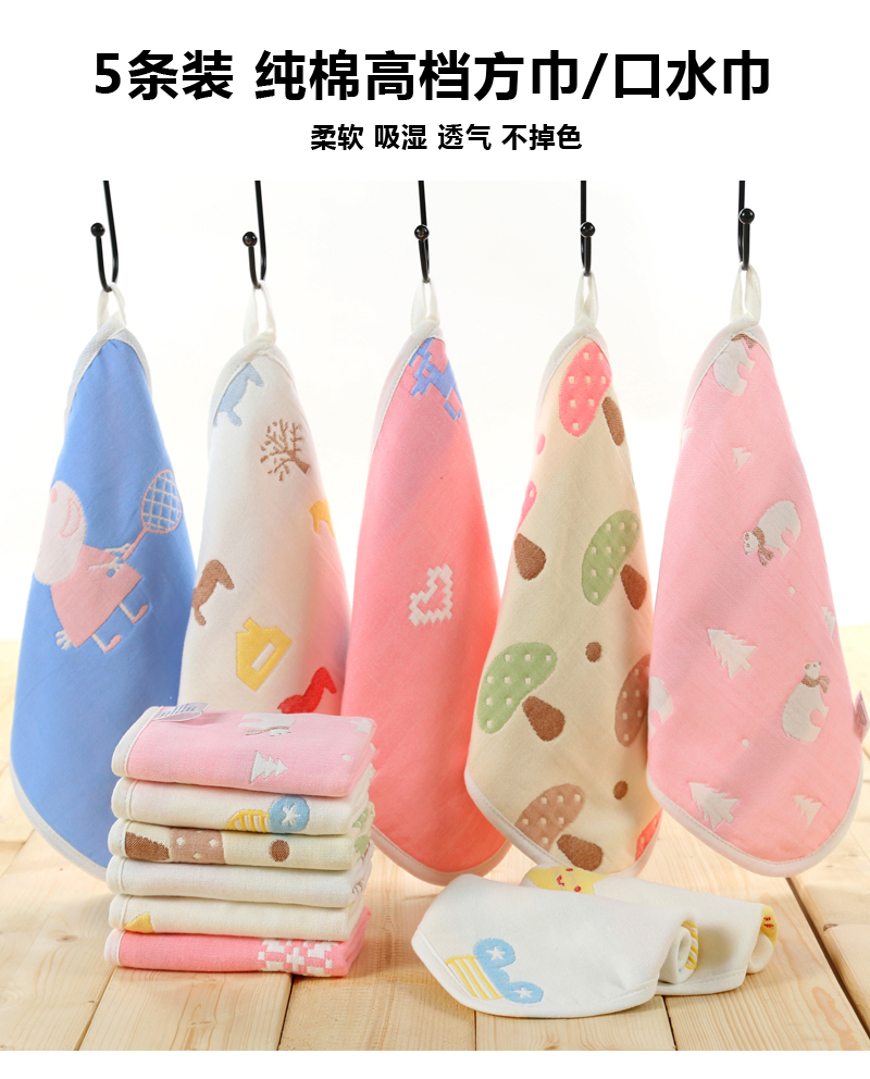 10条装纯棉纱布小方巾6层婴儿童毛巾柔软美容洗脸面巾吸水四方满