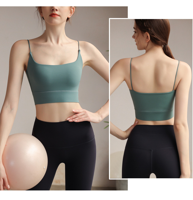 봄과 여름 새로운 충격 방지 얇은 어깨 슬림 스포츠 속옷 여성 피트니스 섹시한 슬링 브래지어 가슴 패드 요가 조끼