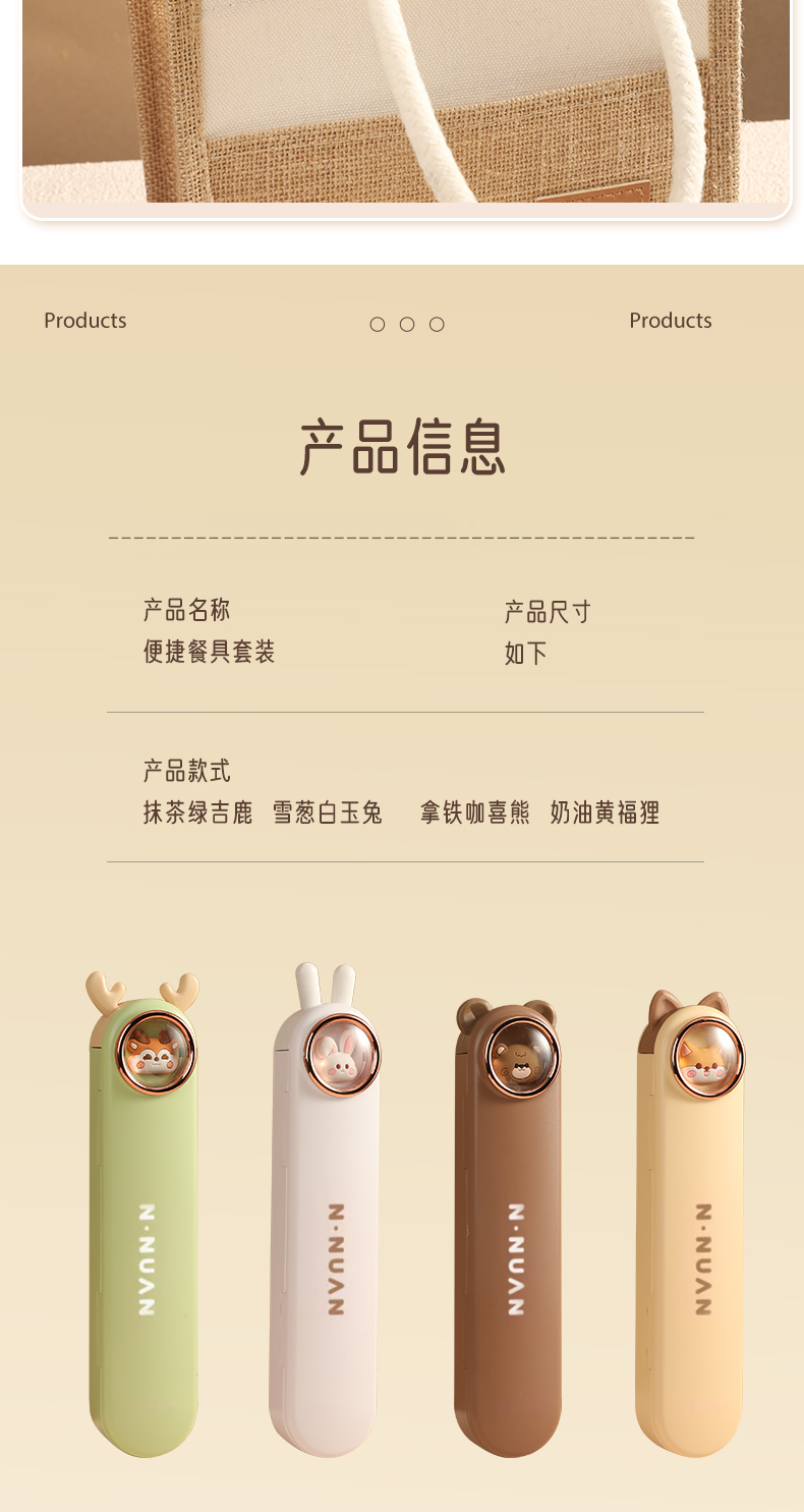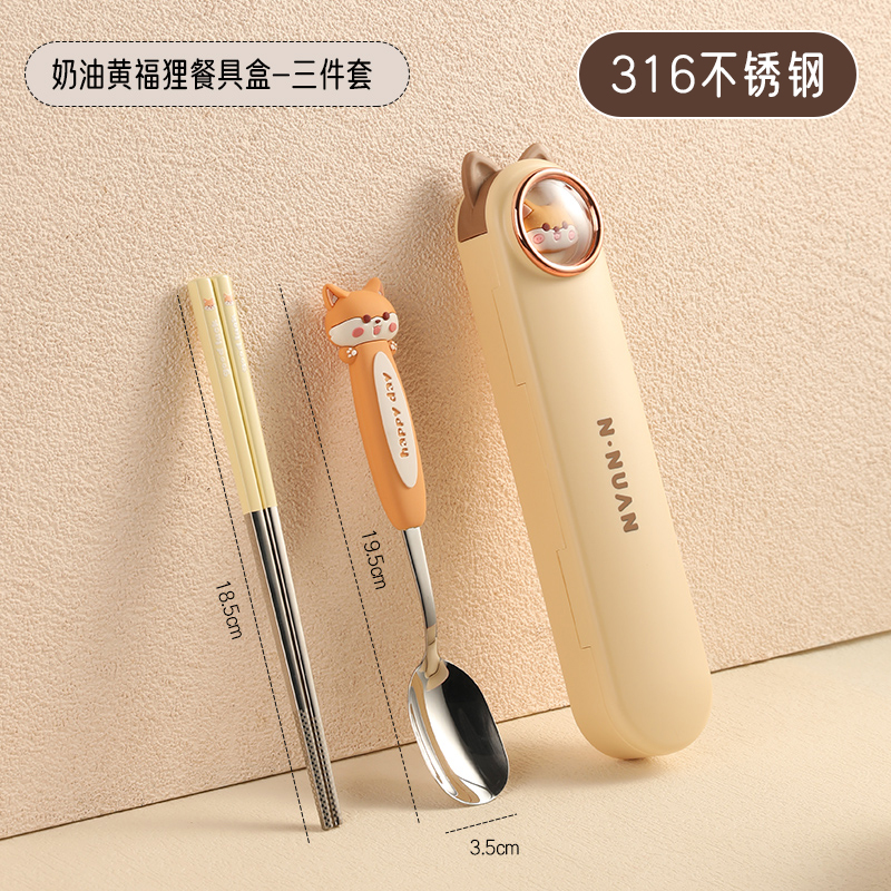• 【三件套】奶油黄福狸【筷子+勺子+餐盒】✦