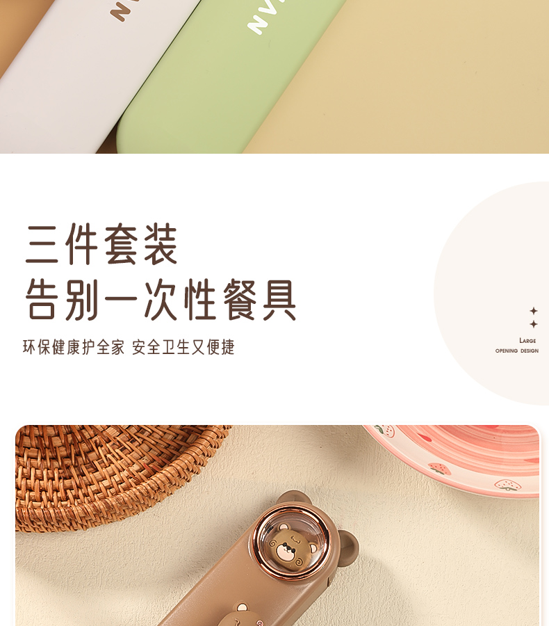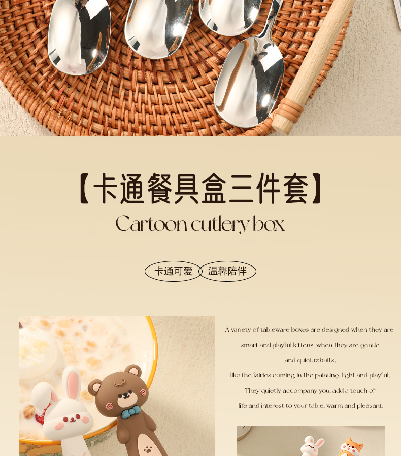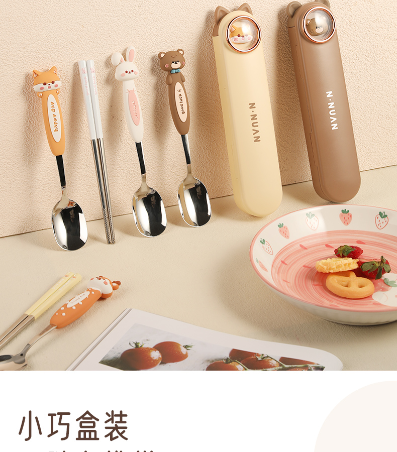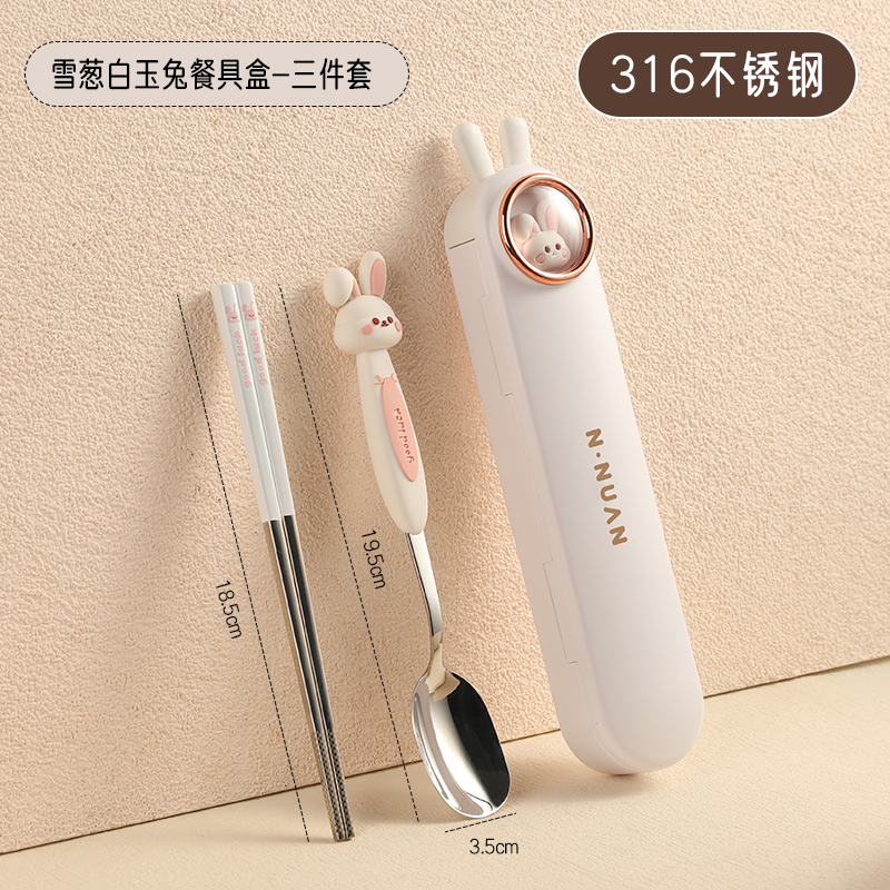 • 【三件套】雪葱白玉兔【筷子+勺子+餐盒】✦