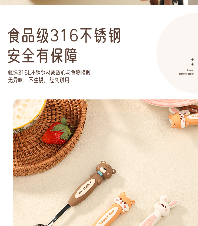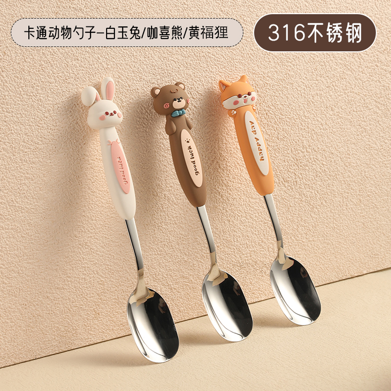 儿童卡通勺子316不锈钢吃饭勺调羹高颜值餐具汤匙餐勺喝满和