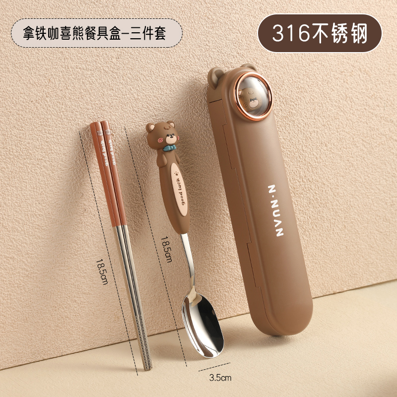 • 【三件套】拿铁咖喜熊【筷子+勺子+餐盒】✦