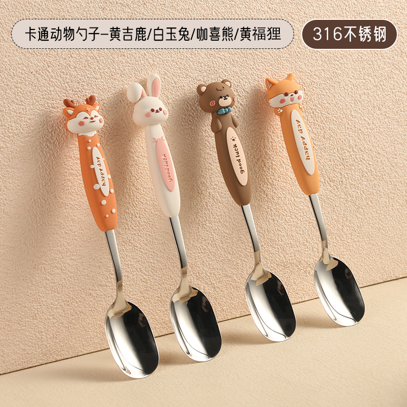 儿童卡通勺子316不锈钢吃饭勺调羹高颜值餐具汤匙餐勺喝满和스토어 가기