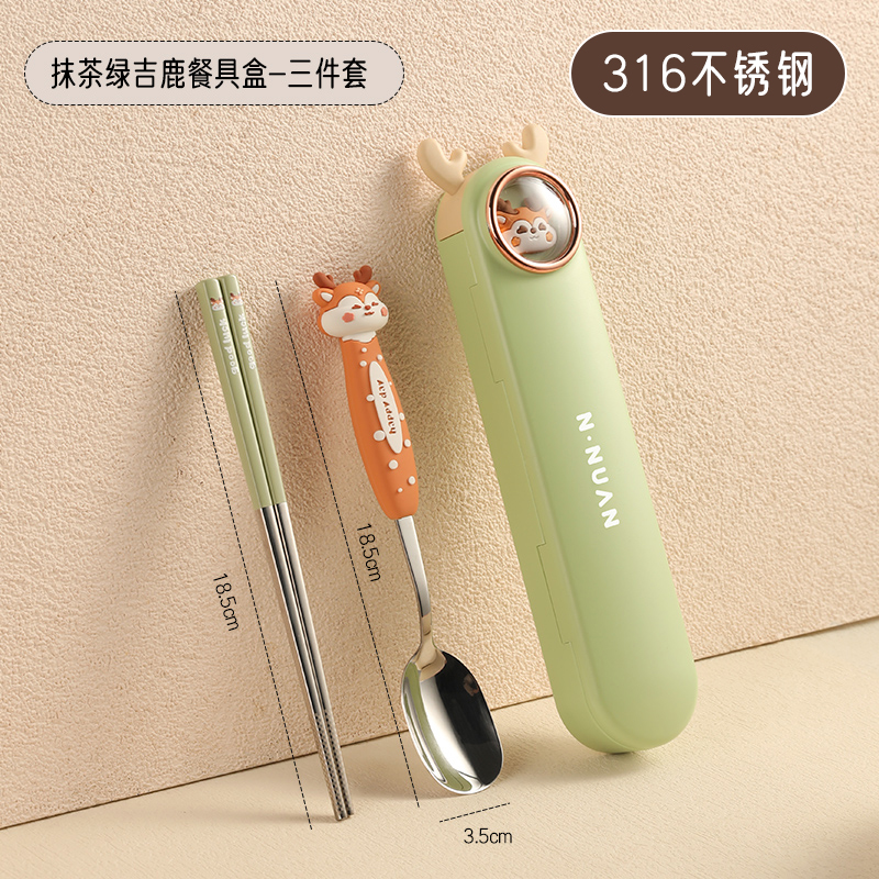 • 【三件套】抹茶绿吉鹿【筷子+勺子+餐盒】✦