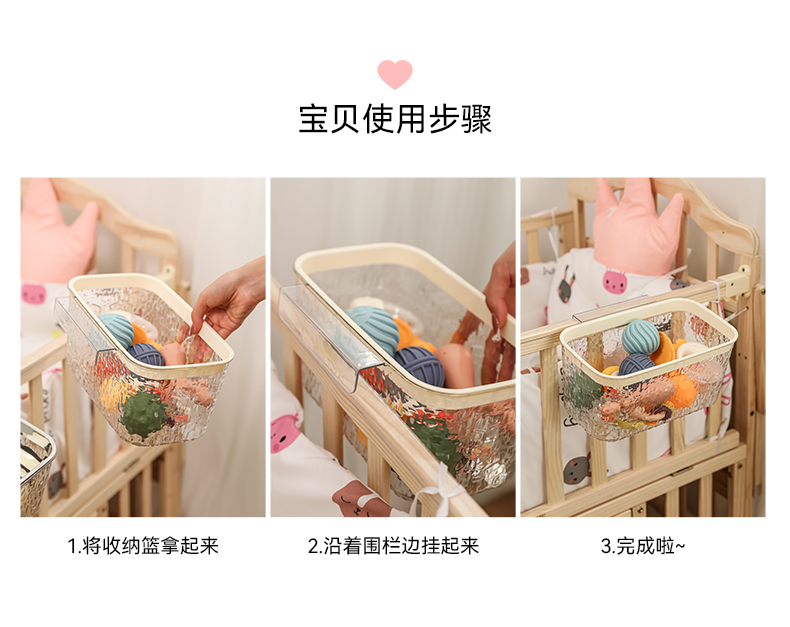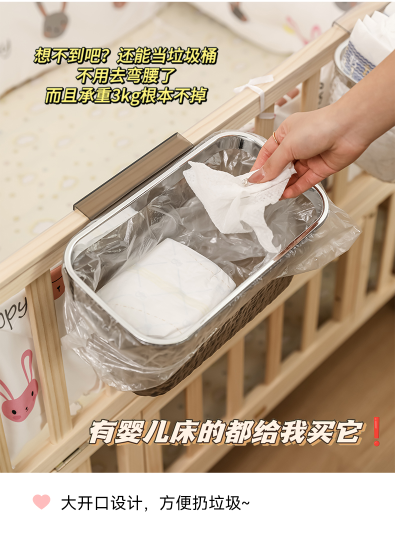 床边挂篮宝宝床头尿布尿不湿收纳筐围栏收纳盒婴儿床杂物收纳满和