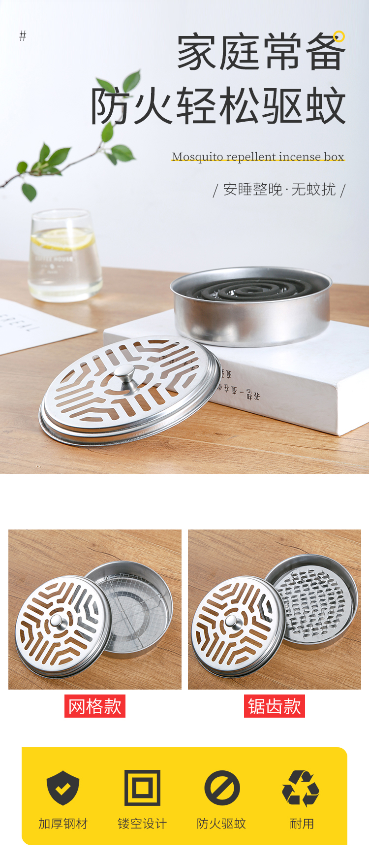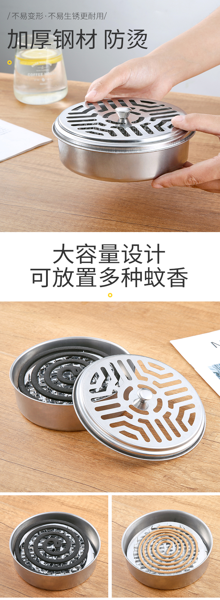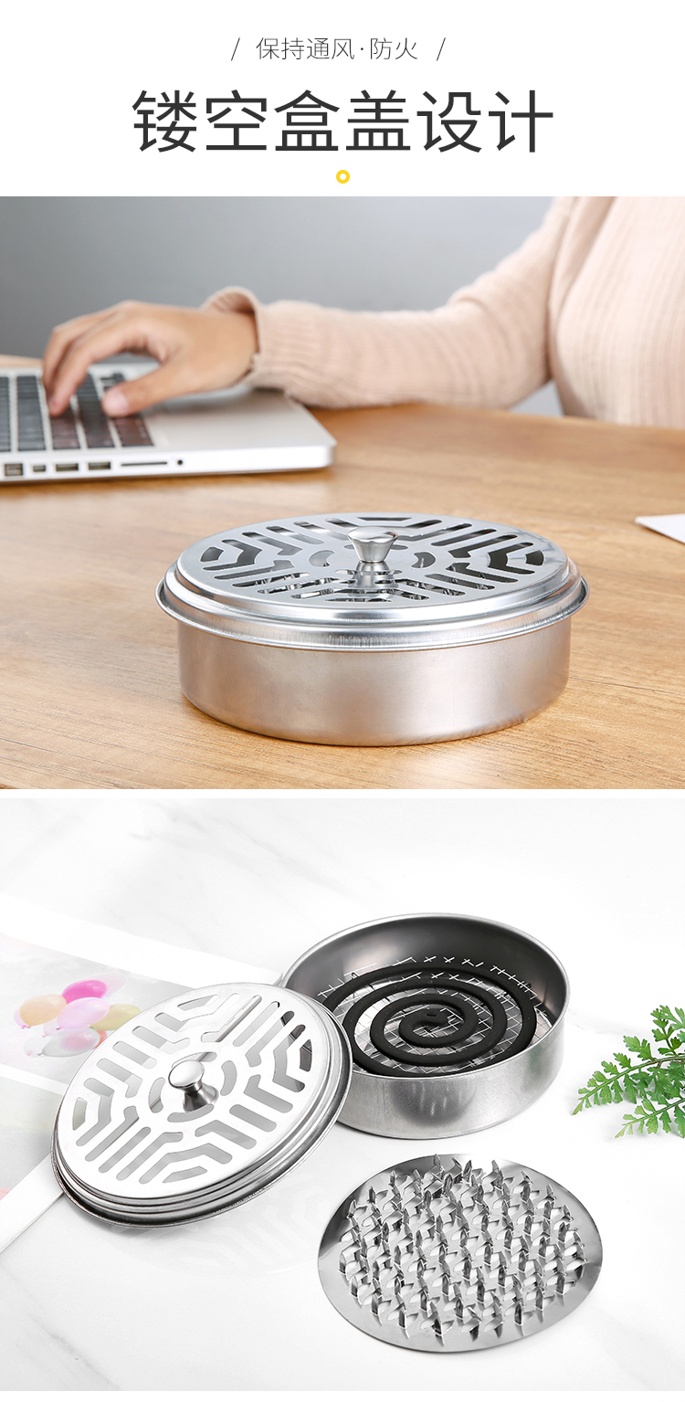 不锈钢蚊香盘带盖防火蚊香家用接灰盒香炉创意便携户外蚊满和스토어 가기