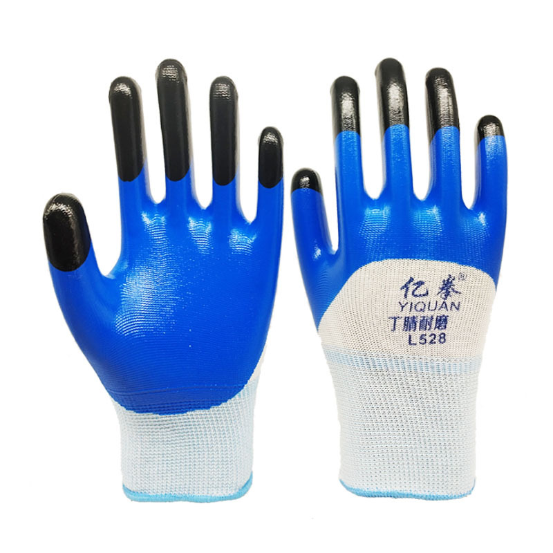 518 파란색과 흰색 니트릴 장갑 접착제 반 접착제 코팅 팜 장갑 착용 방지 부틸 고무 코팅 접착제 장갑