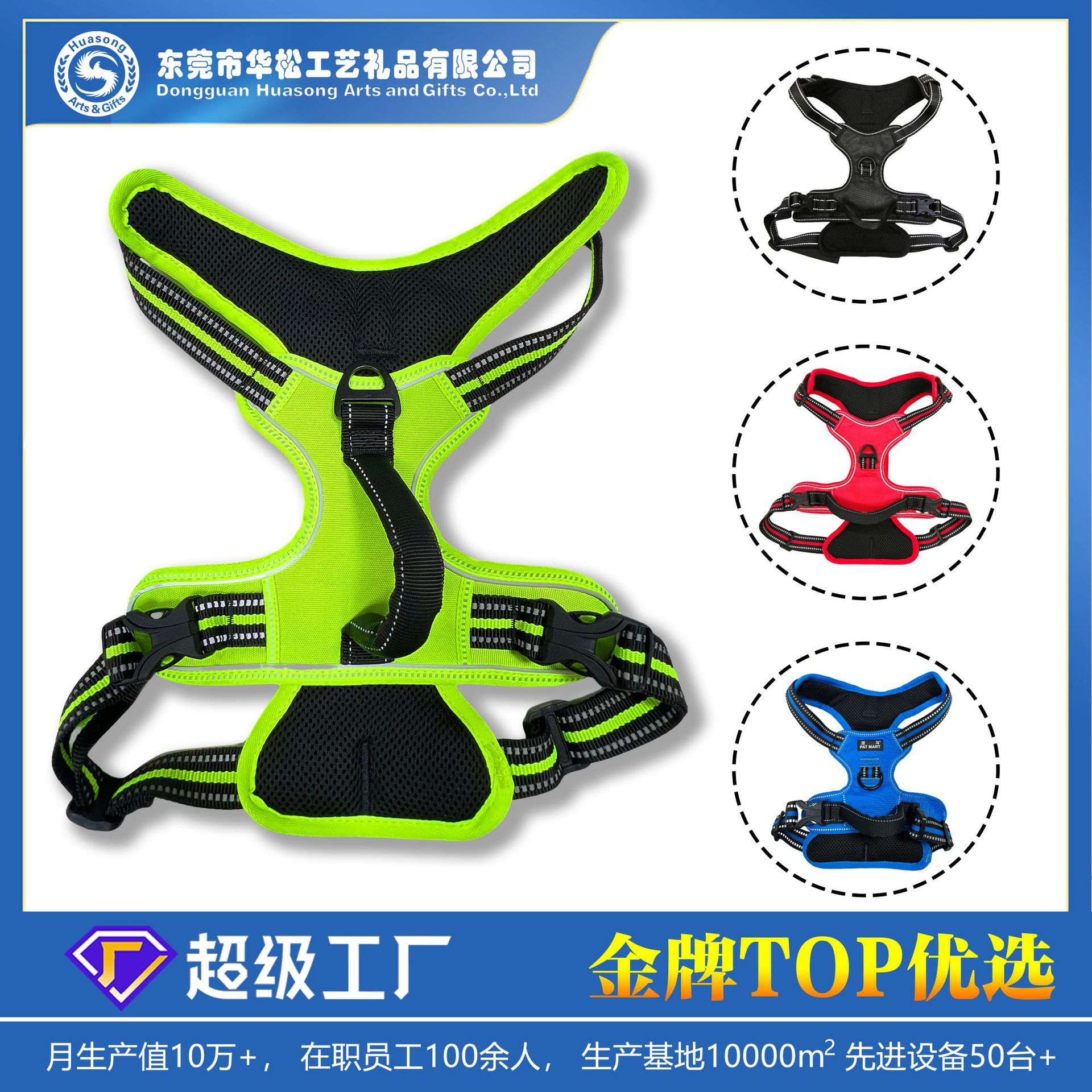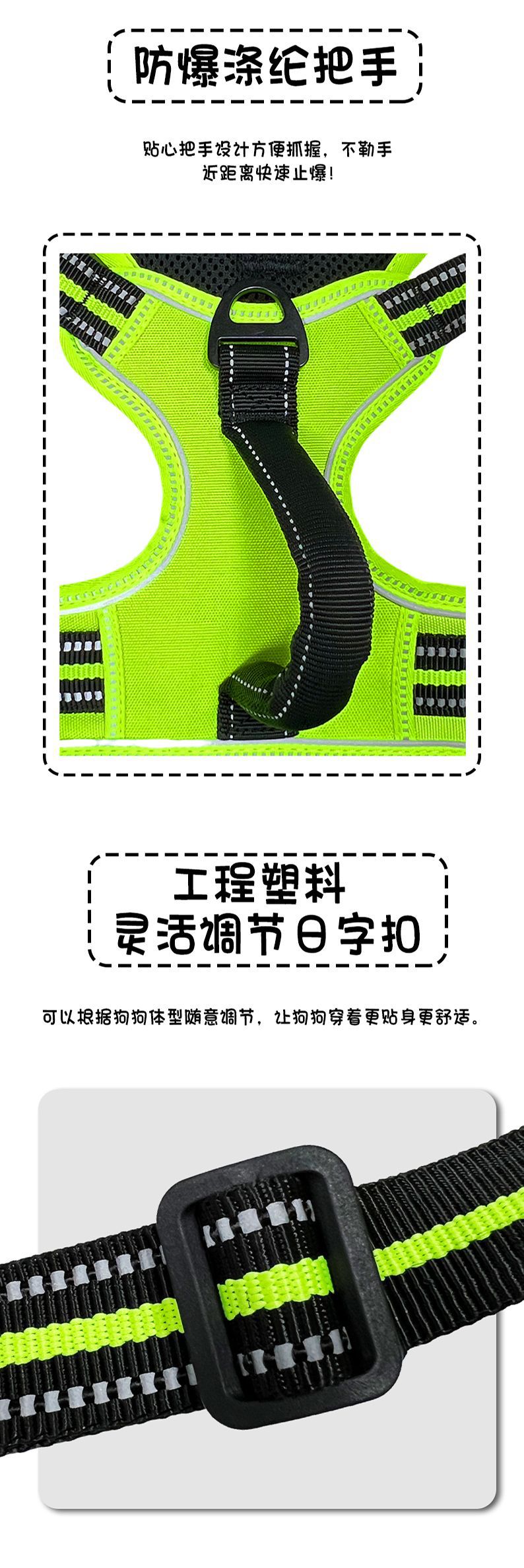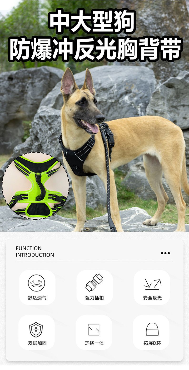 중형 및 대형 개 가슴 스트랩 통기성 반사 폭발 방지 플래시 애완 동물 개 가슴 뒤로 견인 로프 조끼 가슴 스트랩