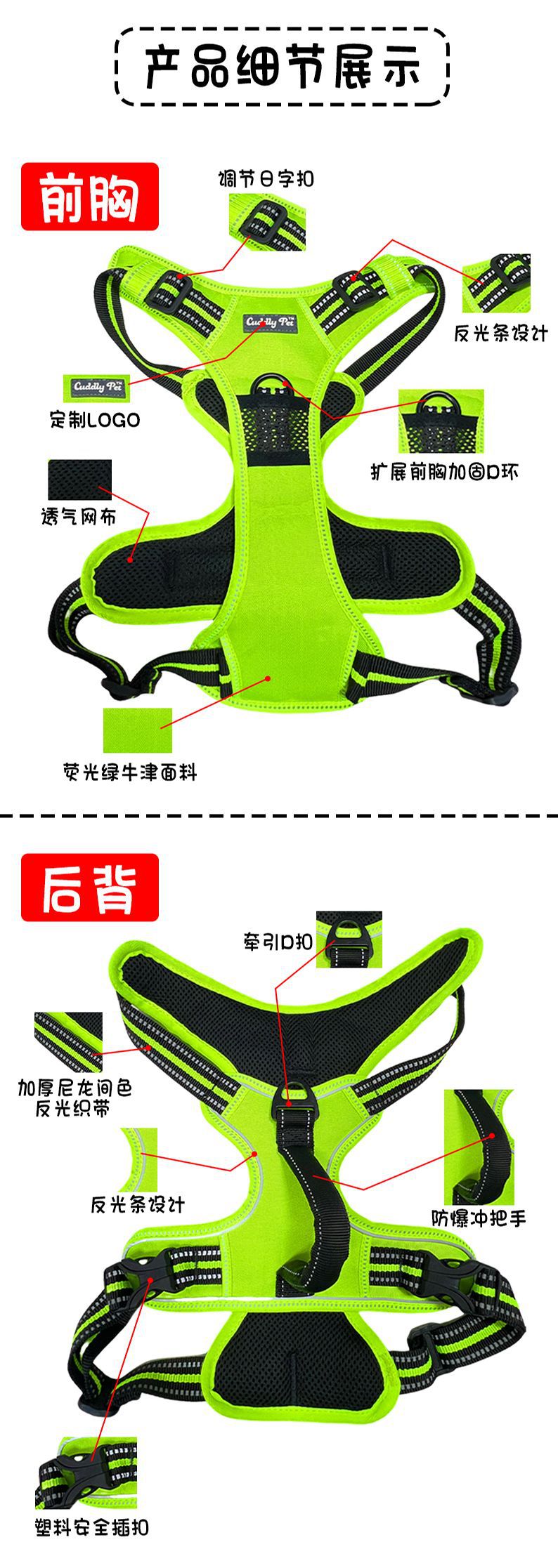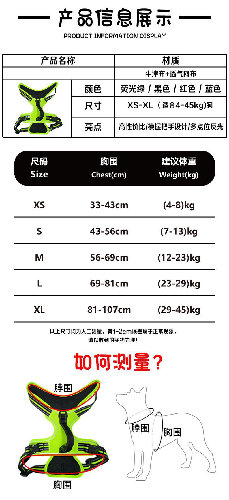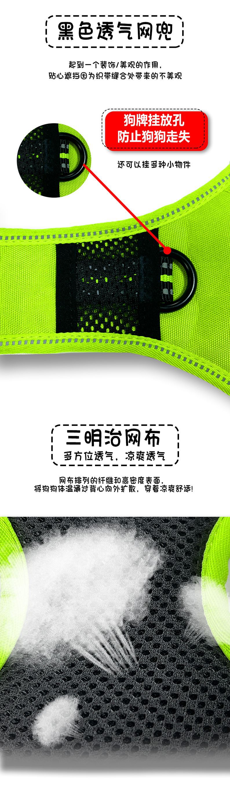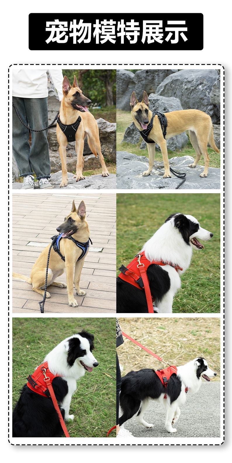중형 및 대형 개 가슴 스트랩 통기성 반사 폭발 방지 플래시 애완 동물 개 가슴 뒤로 견인 로프 조끼 가슴 스트랩