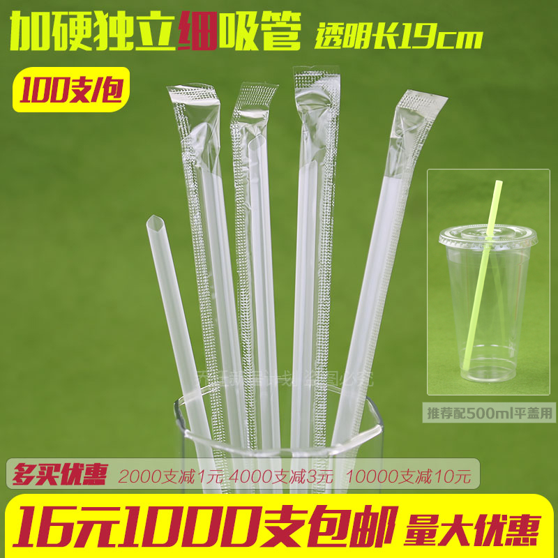 2000只包邮 一次性透明细吸管果汁豆浆尖头独立单独包装单支满和