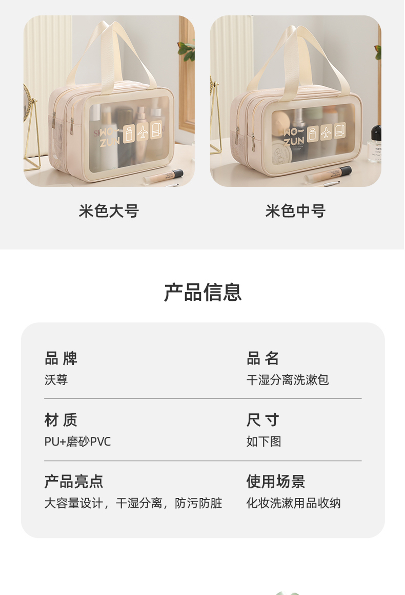 • 中号米色【WOZUN】干湿分离大容量-双层-双手提✦