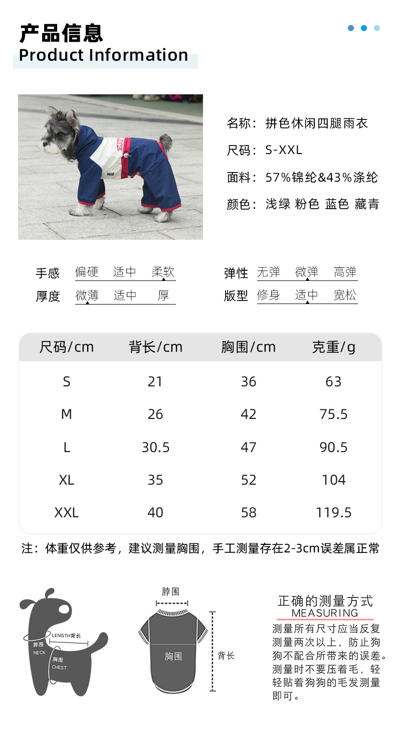 봄과 여름 강아지 네 다리 대비 색상 충전 옷 샹송이 베어 테디 방수 캔디 컬러 도그 워킹 의류스토어 가기