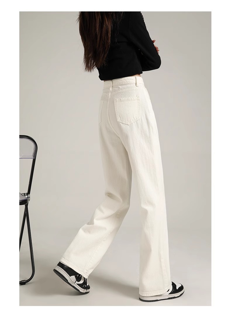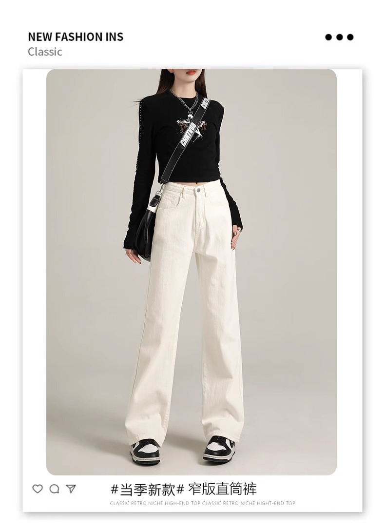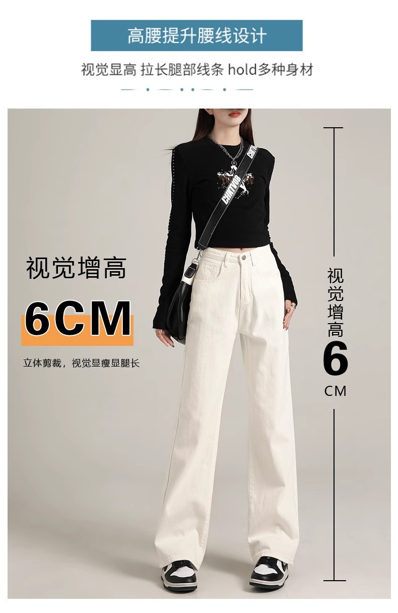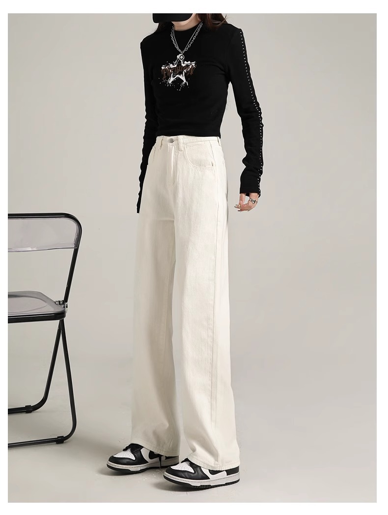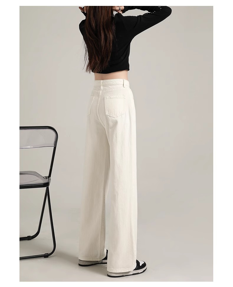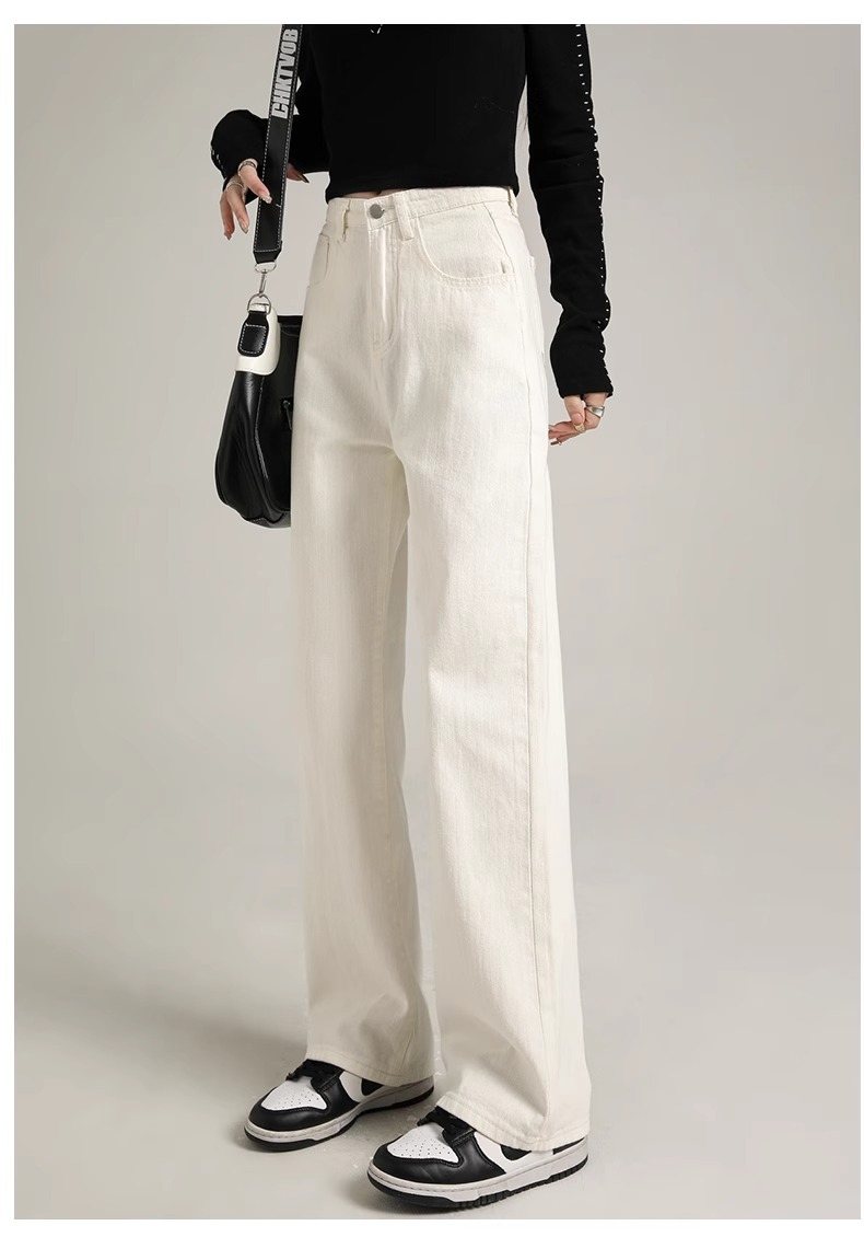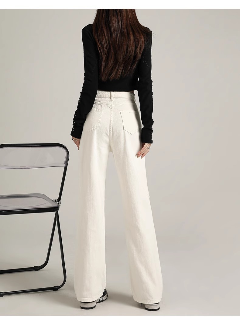흰색 좁은 넓은 다리 청바지 여성 여름 2024 새로운 높은 허리 드레이핑 짧은 직선 바지스토어 가기