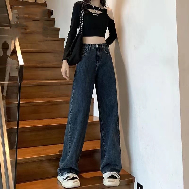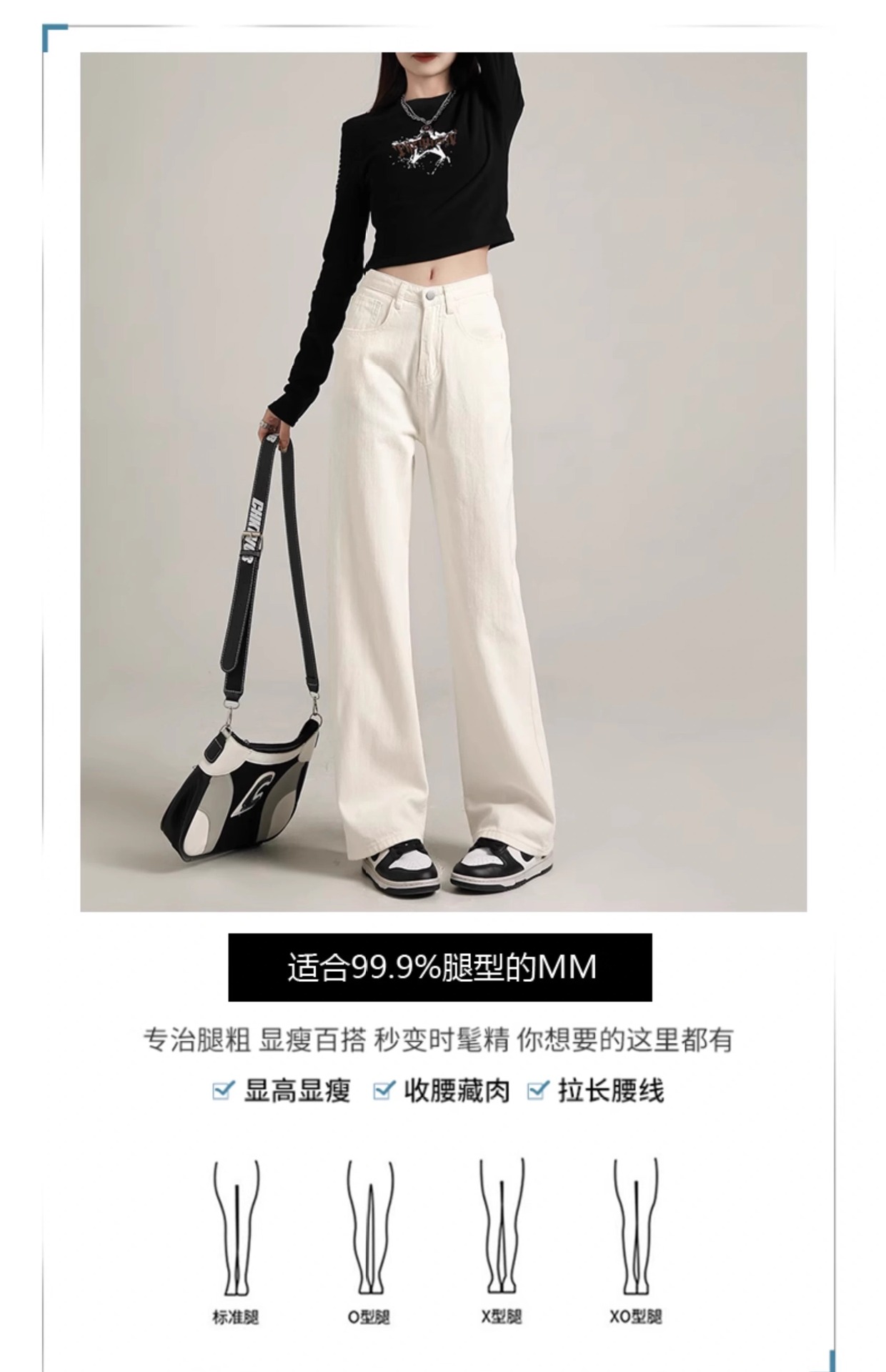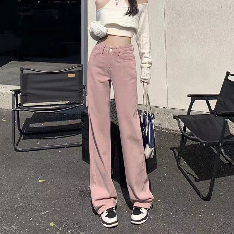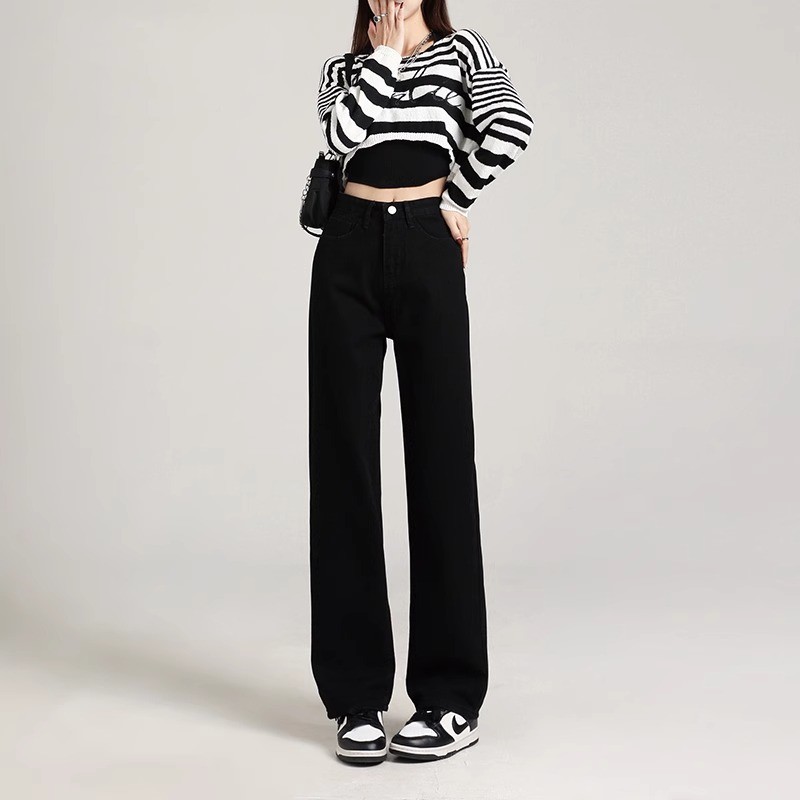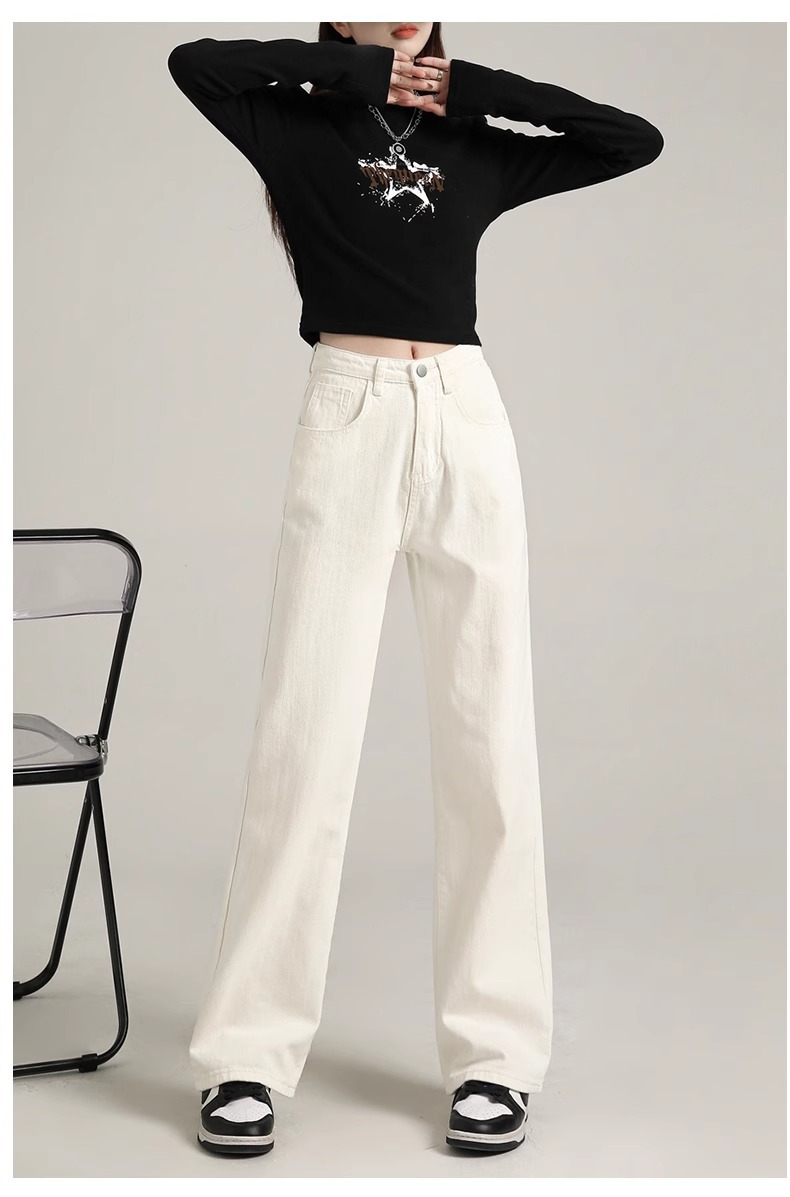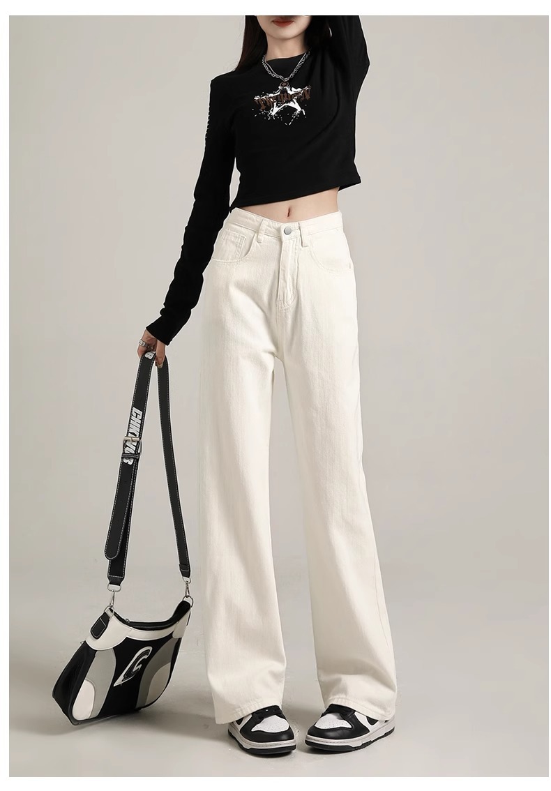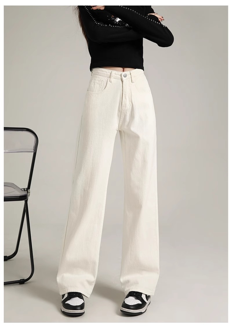 흰색 좁은 넓은 다리 청바지 여성 여름 2024 새로운 높은 허리 드레이핑 짧은 직선 바지스토어 가기