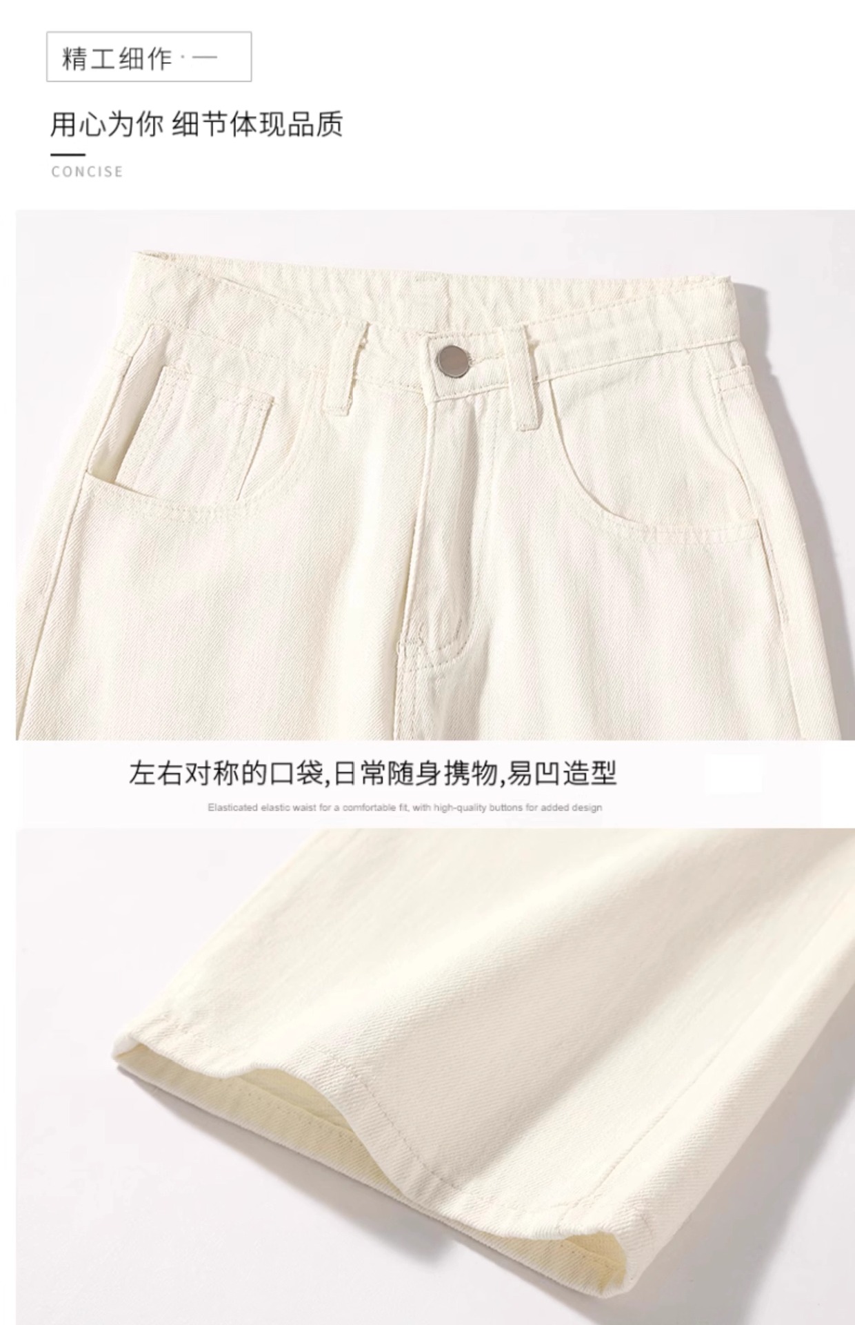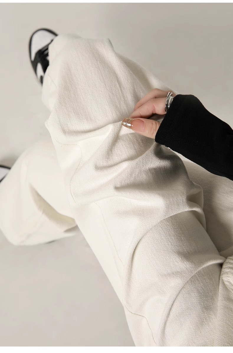 흰색 좁은 넓은 다리 청바지 여성 여름 2024 새로운 높은 허리 드레이핑 짧은 직선 바지