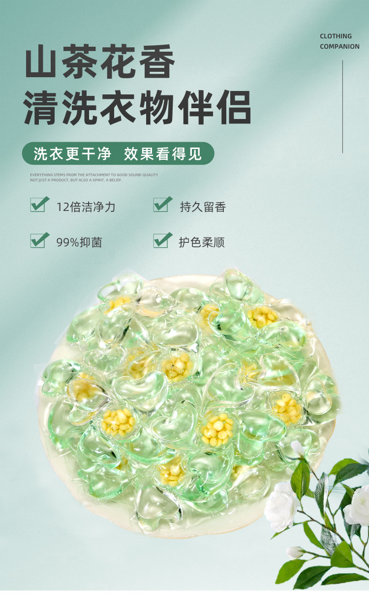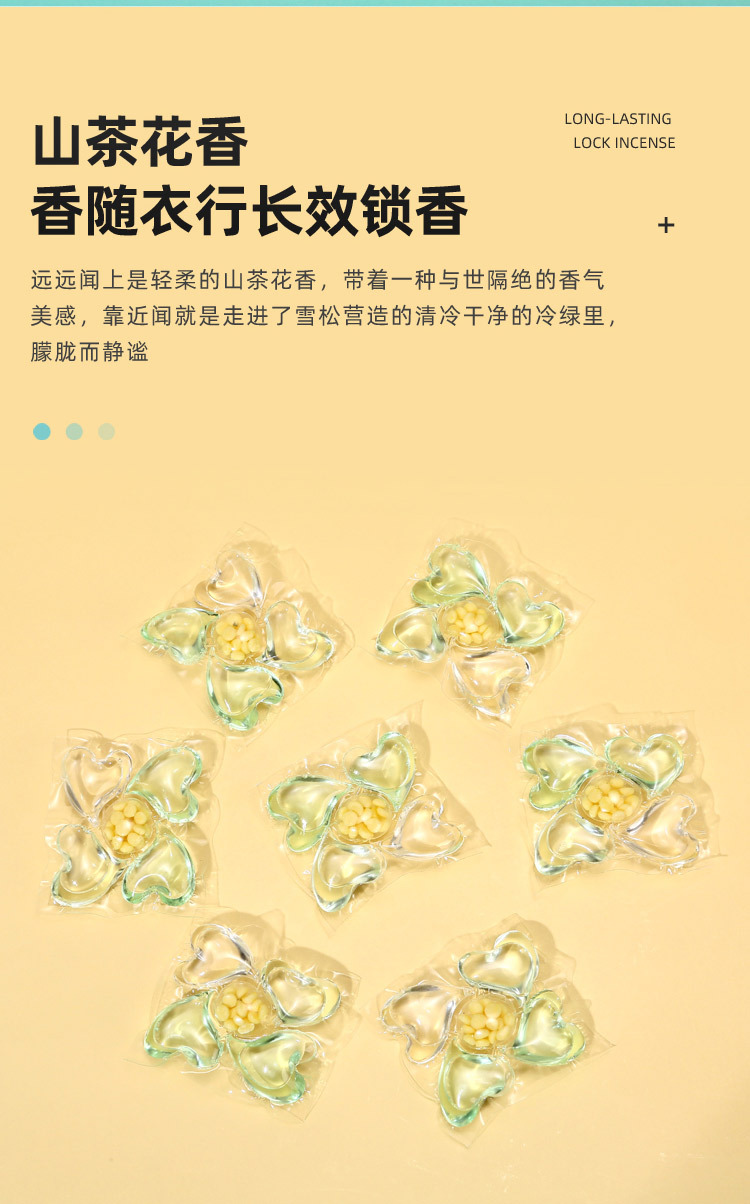 동백 꽃 세탁 구슬 배럴 5 대 1 지속 향수 세탁 구슬 강한 오염 제거 5 공동 집중 세탁 공