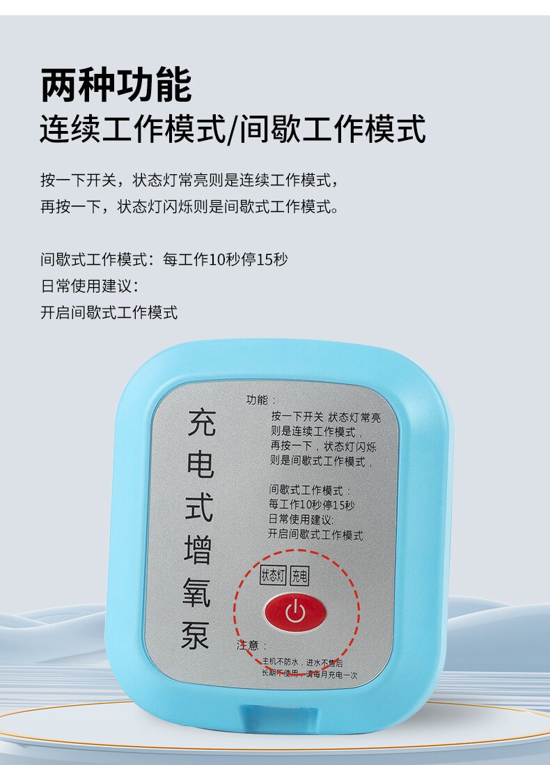 • 충전식 단일 구멍 산소 펌프(J6) 에어 스톤 모델 블루