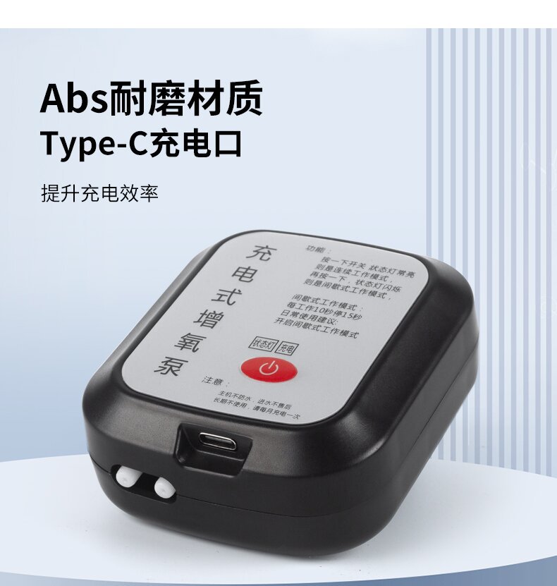 • 충전식 단일 구멍 산소 펌프(J6) 에어 스톤 모델 블랙