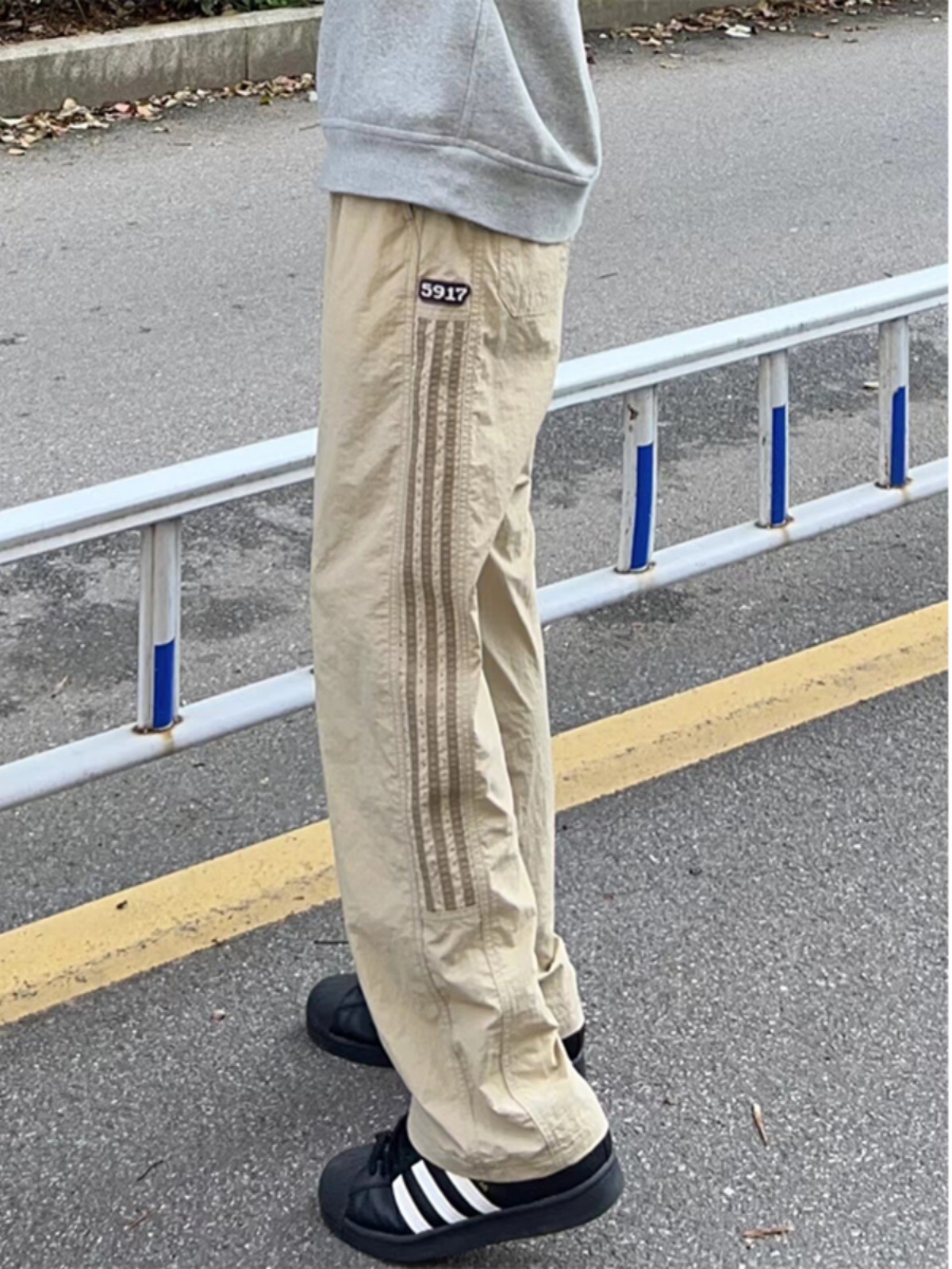 GFCPGUAN 카키 줄무늬 바지 남자 여름 얇은 나일론 빠른 건조 Cordwork 바지 스트레이트 레그 스포츠 캐주얼 바지