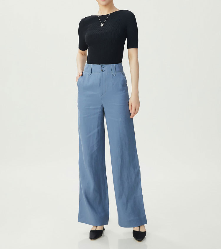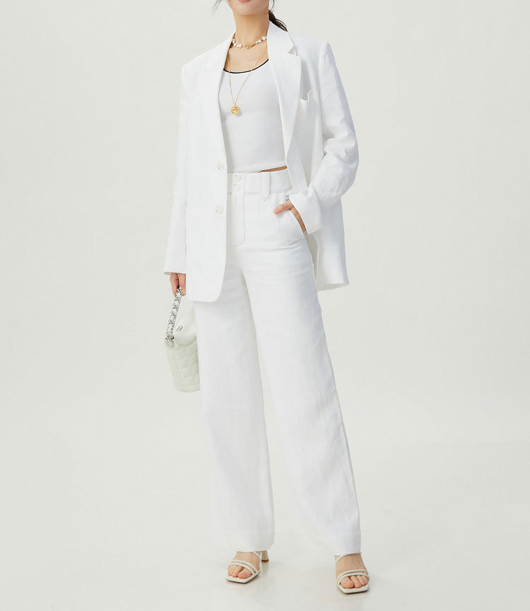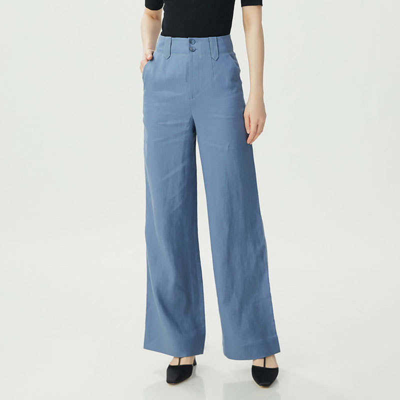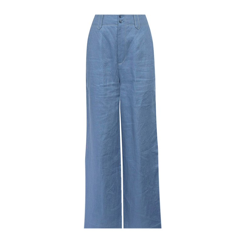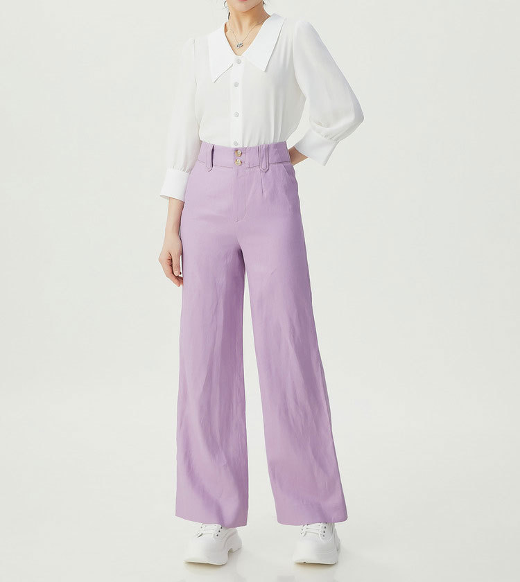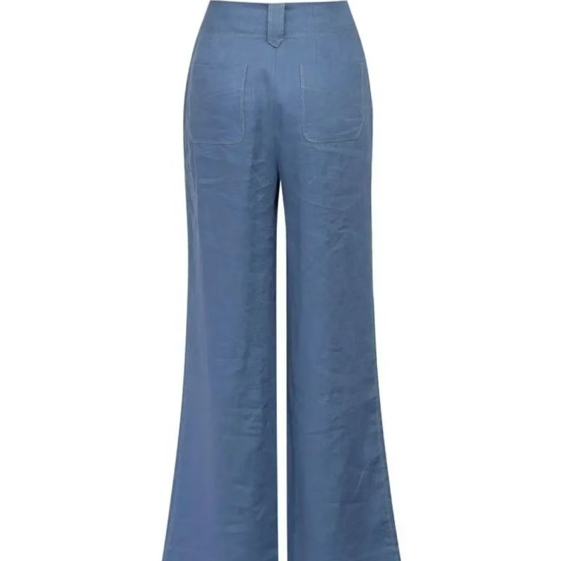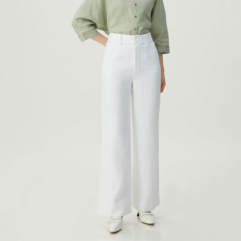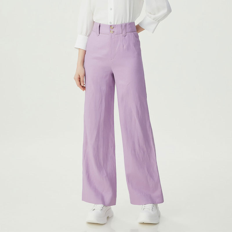 형제의 쇼핑몰 같은 스타일 여자 2024 년 여름 새로운 캐주얼 올 매치 하이 허리 리넨 스트레이트 다리 바지 여성용 바지스토어 가기