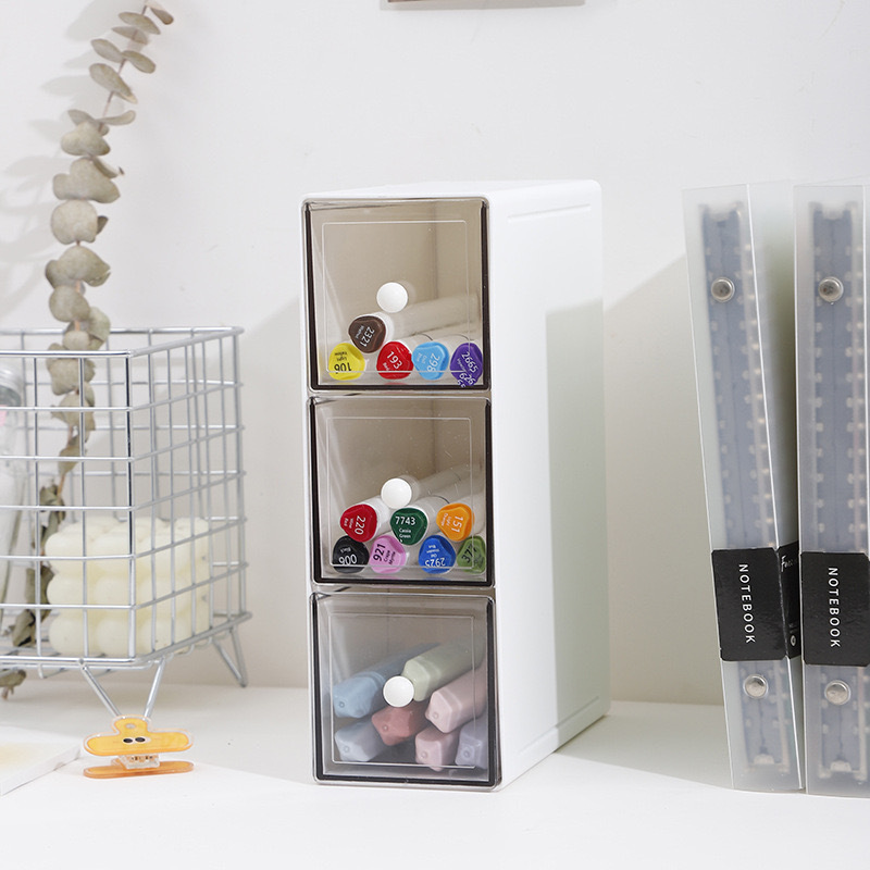 데스크탑 스토리지 박스 서랍 데스크 투명 플라스틱 결합 가능한 소녀의 높은 가치 Ins 스타일 문구 보관 랙