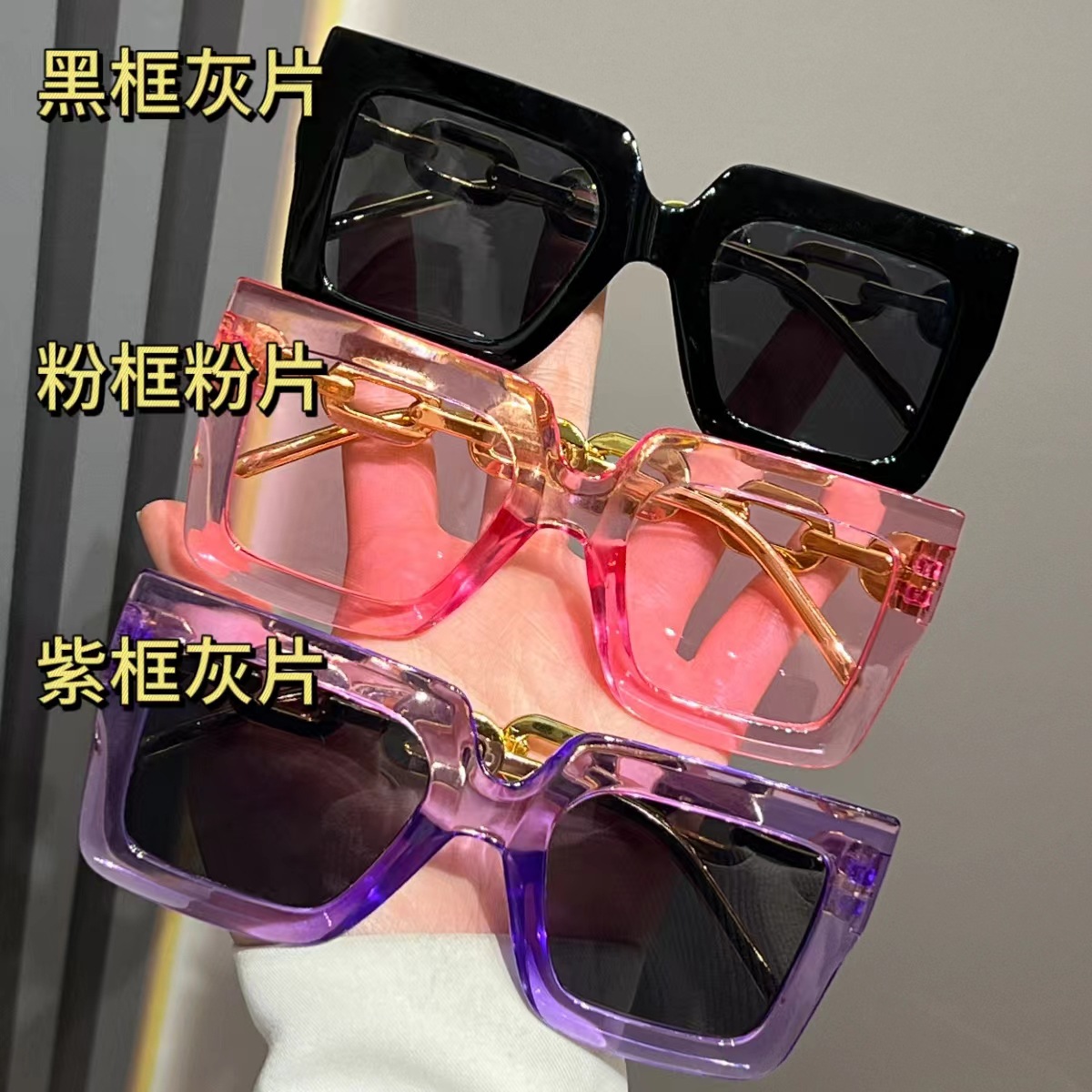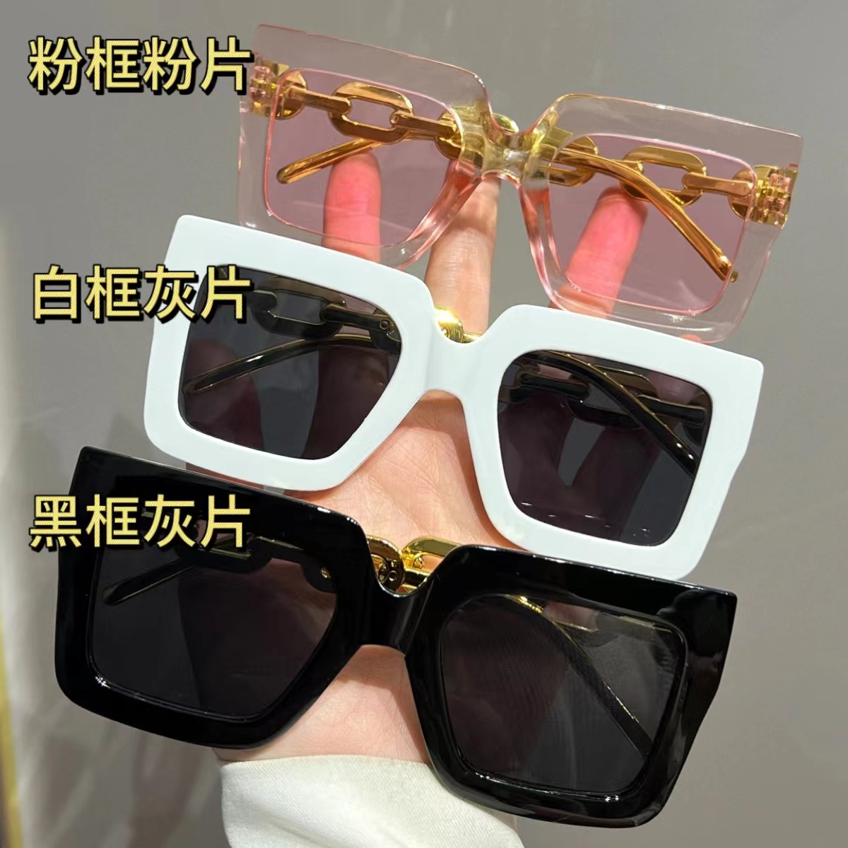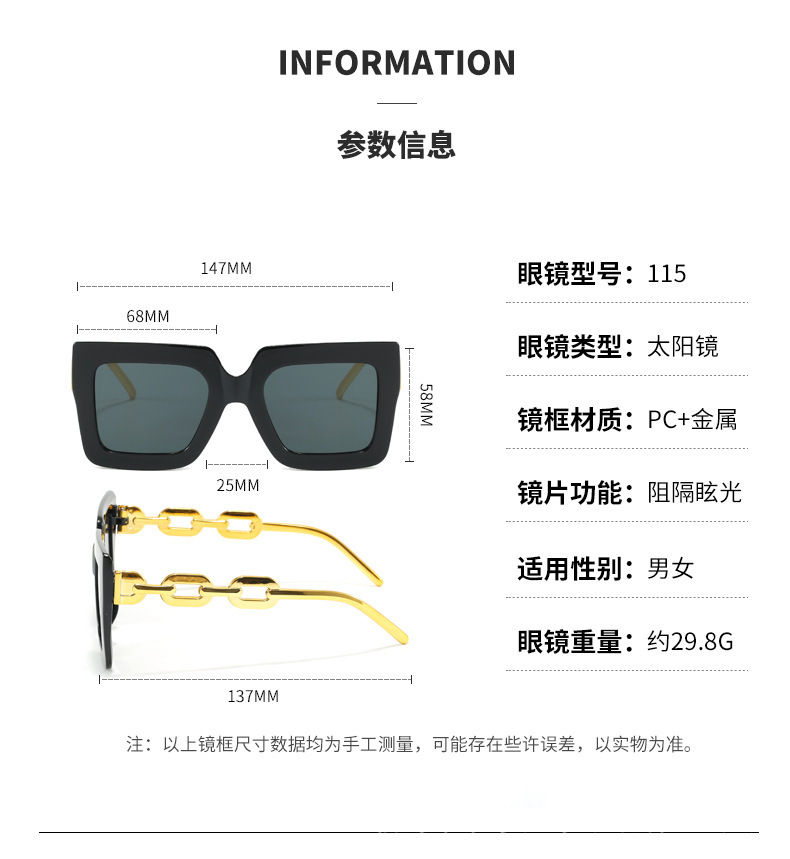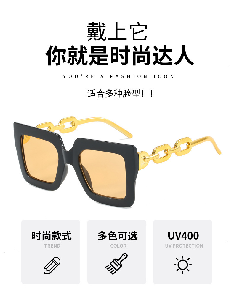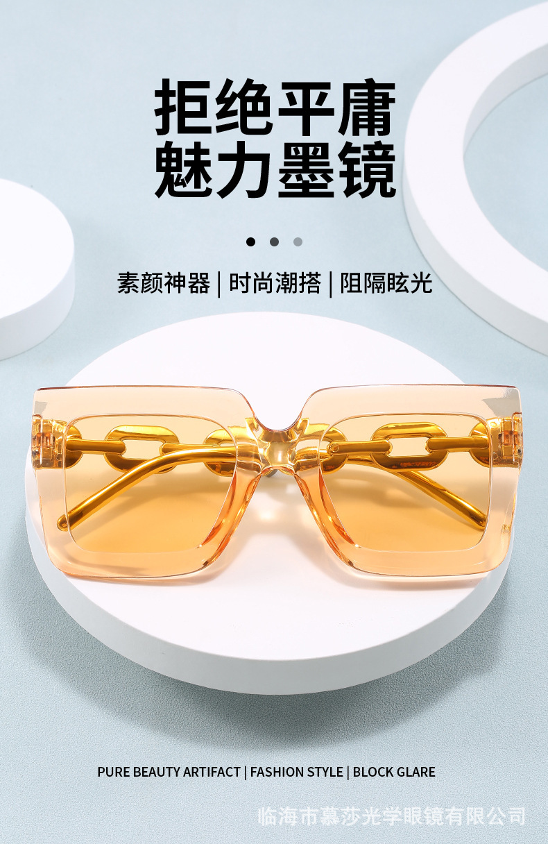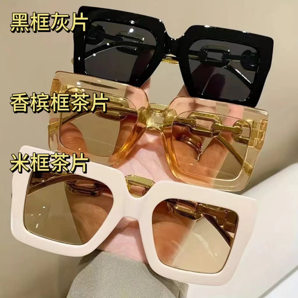 유럽과 미국의 대형 프레임 체인 선글라스 여성의 새로운 광장 선글라스 자외선 차단 패션 국경 안경