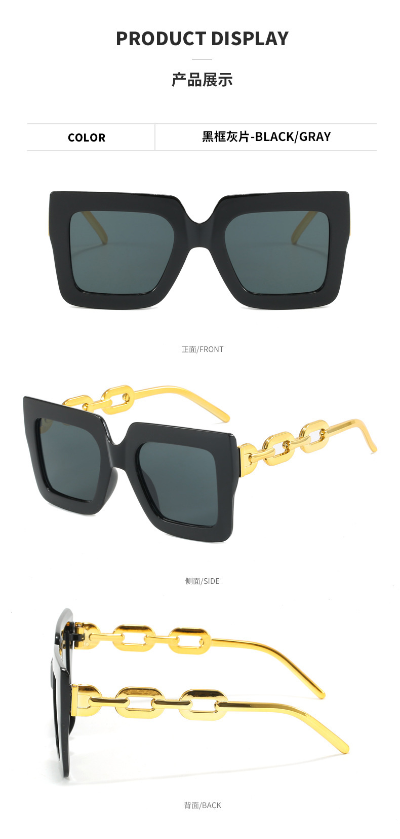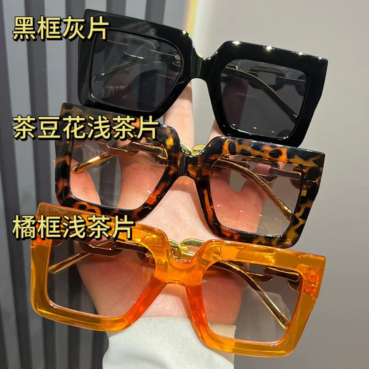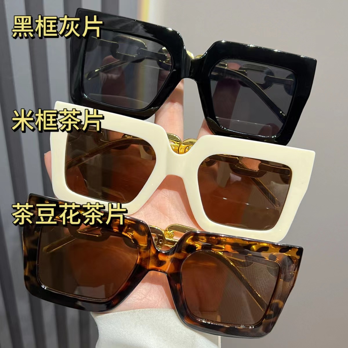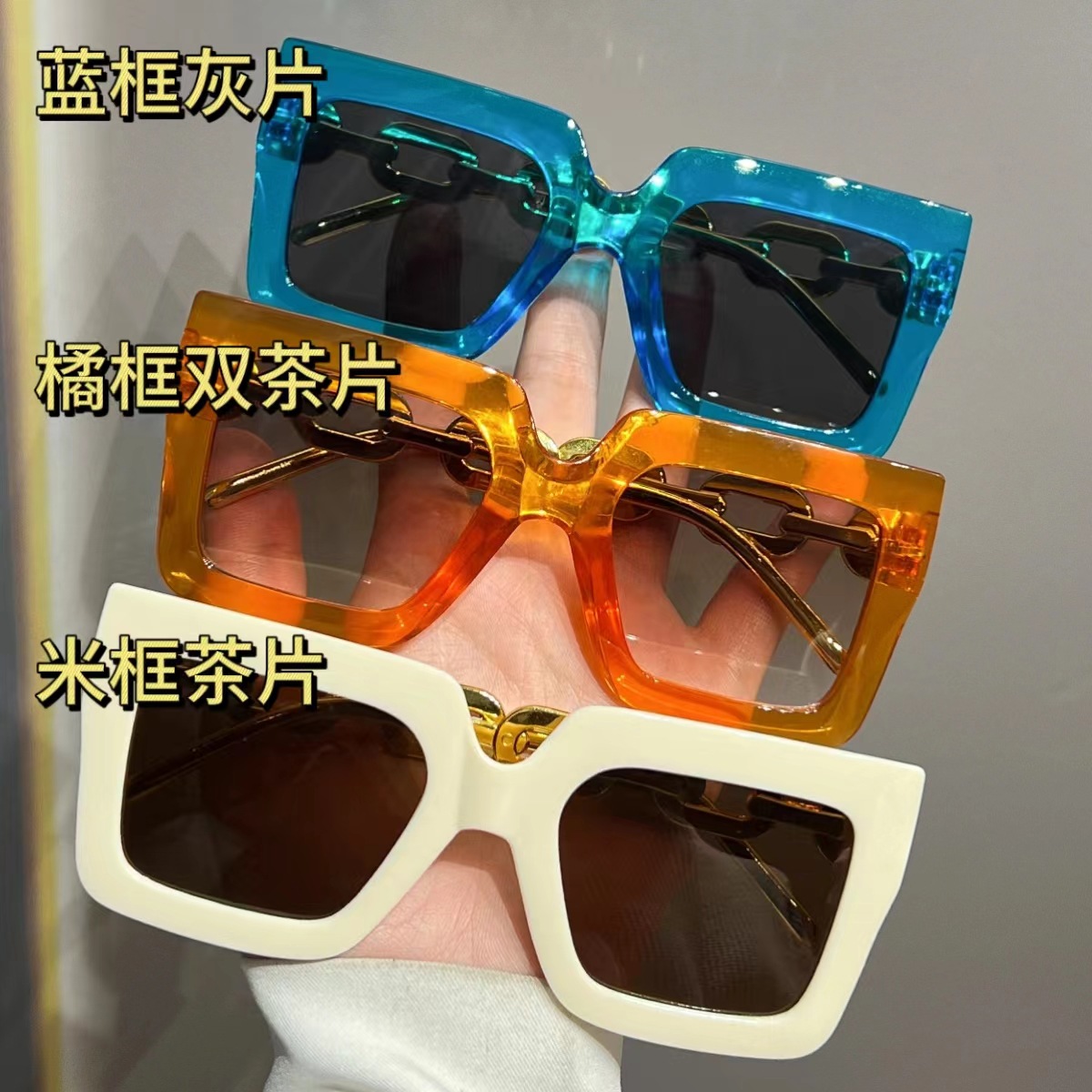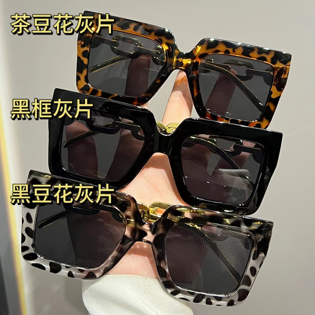 유럽과 미국의 대형 프레임 체인 선글라스 여성의 새로운 광장 선글라스 자외선 차단 패션 국경 안경