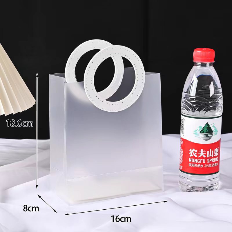 재고 도매 젖빛 플라스틱 휴대용 의류 가방 pp 투명 핸드백 휴대용 선물 웨딩 사탕 포장 가방