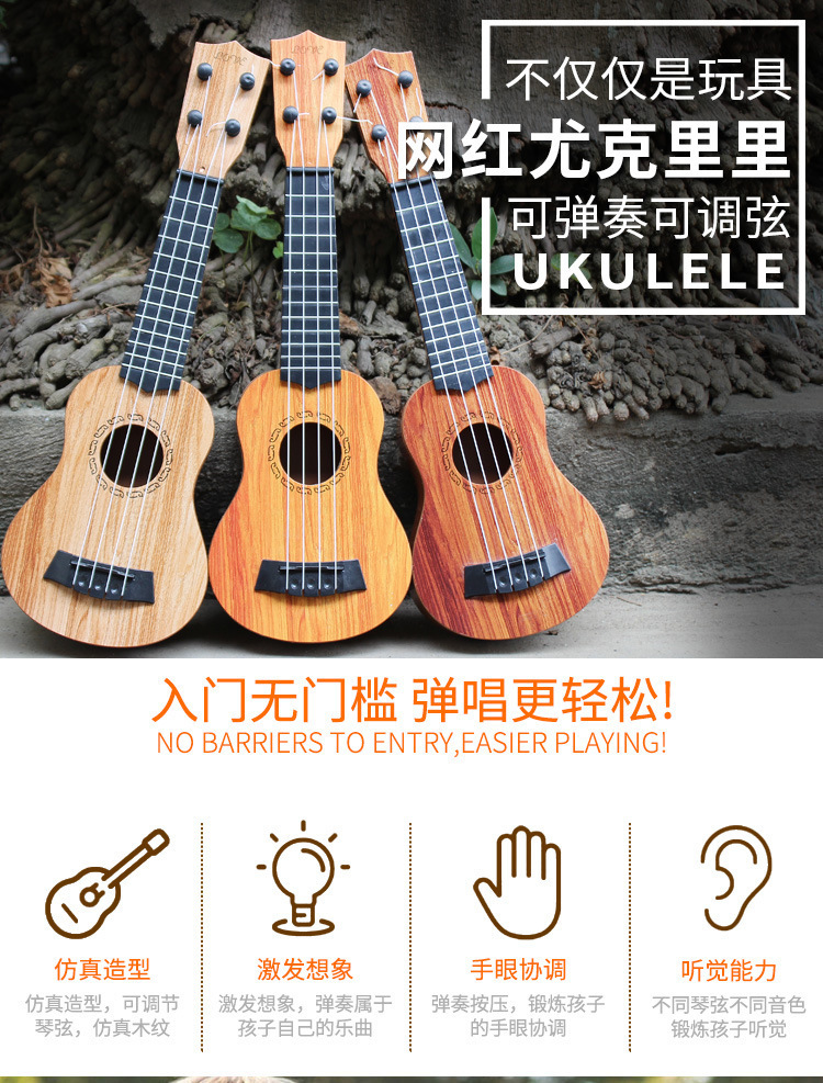 어린이가 연주할 수 있는 우쿨렐레 모형 악기 플라스틱 기타 장난감 초급 초보자 성인용 악기