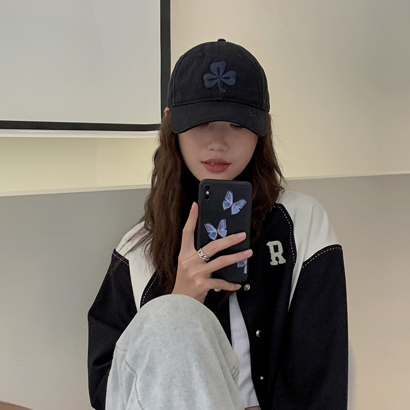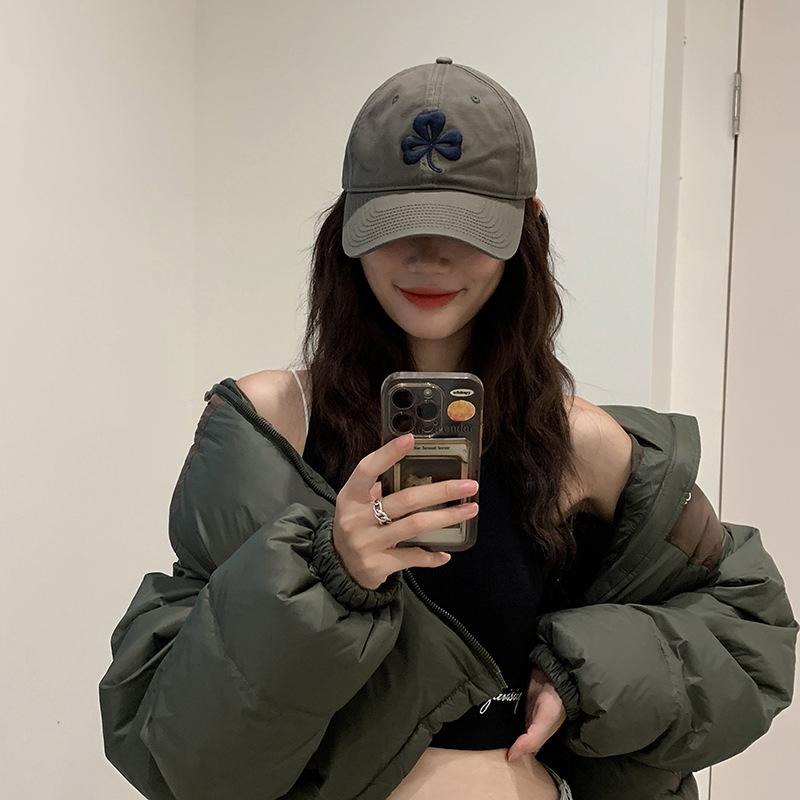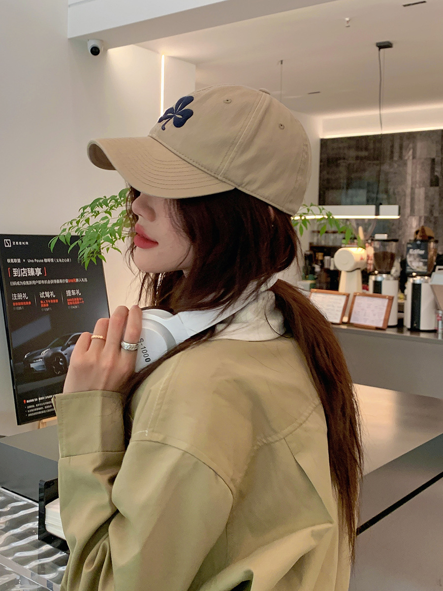 미국식 카키 야구 모자 여자 봄과 가을 와이드 브림 올 매치 페이스 쇼 작은 큰 머리 소프트 탑 자수 모자