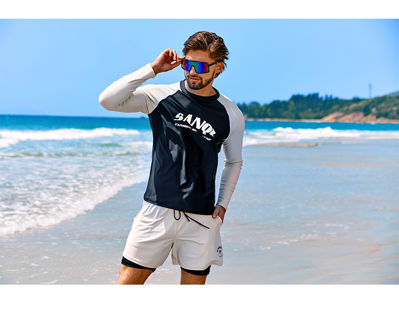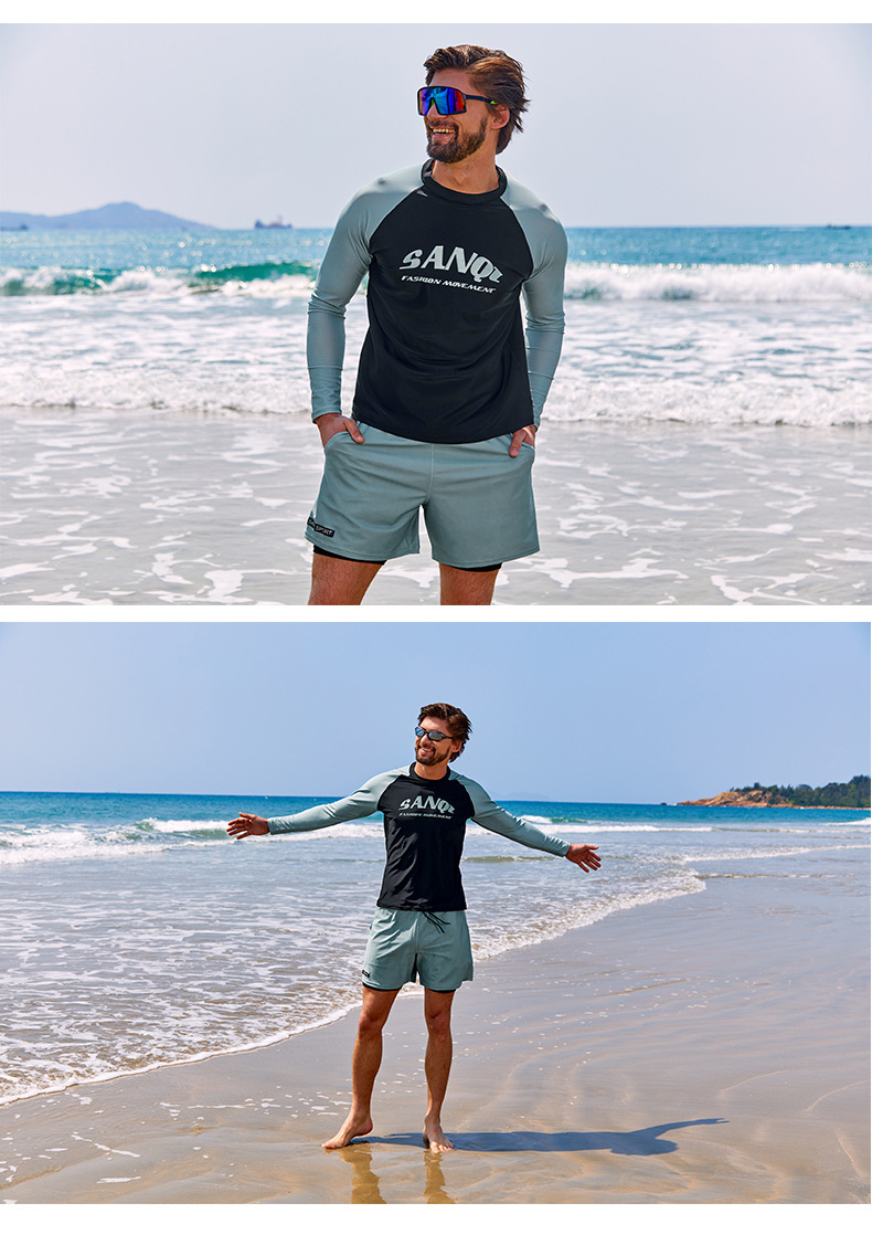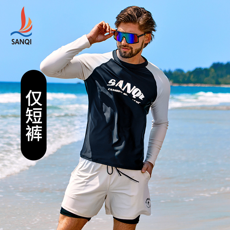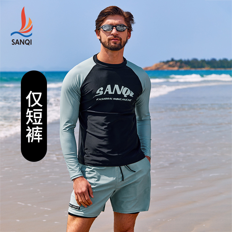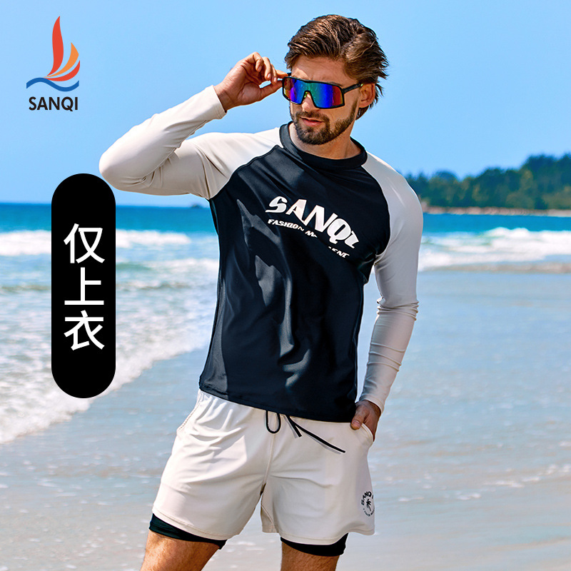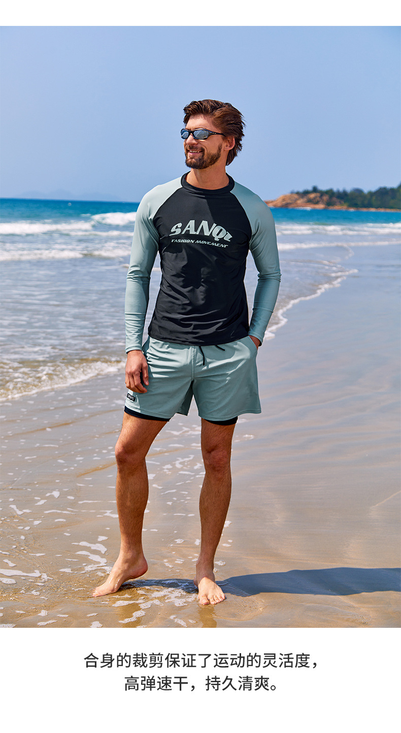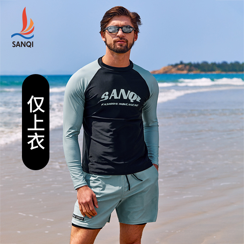 Sanqi 스플릿 수영복 남성 2024 새 세트 긴 소매 전문 썬 보호 빠른 건조 남성 서핑 수트
