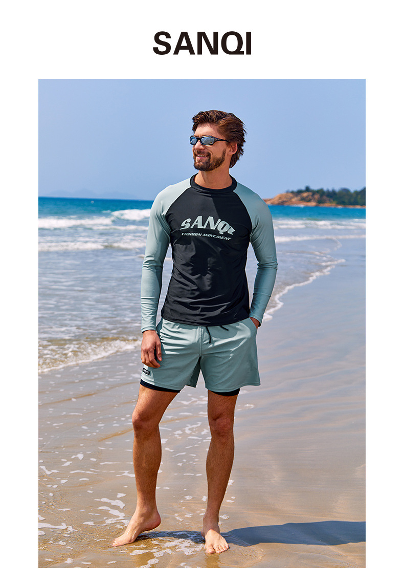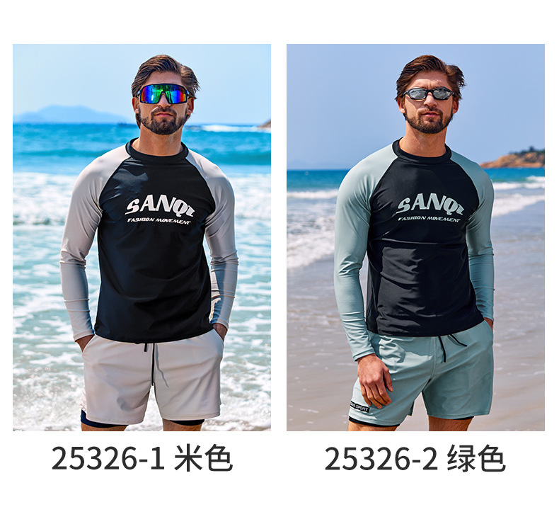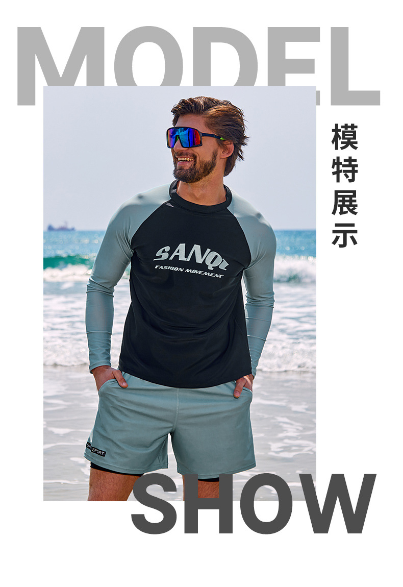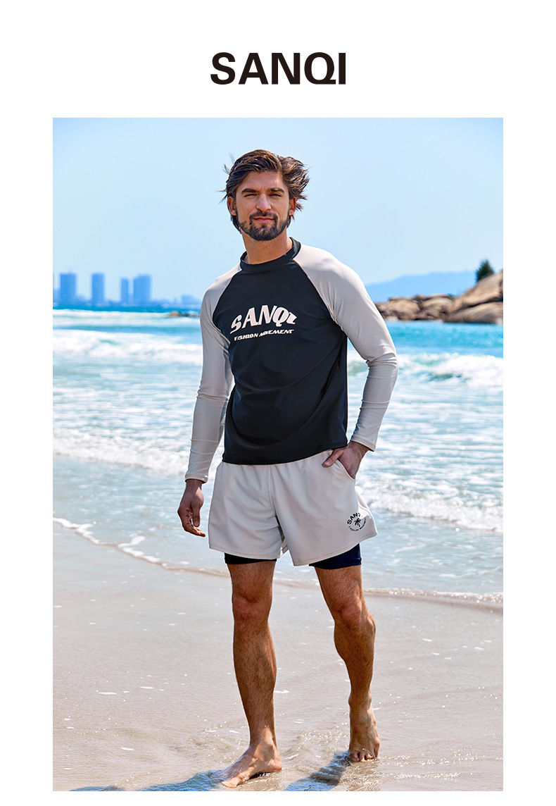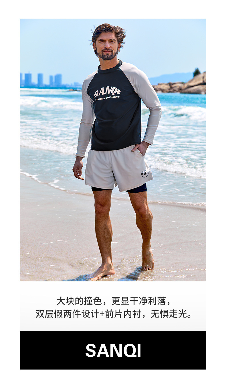 Sanqi 스플릿 수영복 남성 2024 새 세트 긴 소매 전문 썬 보호 빠른 건조 남성 서핑 수트